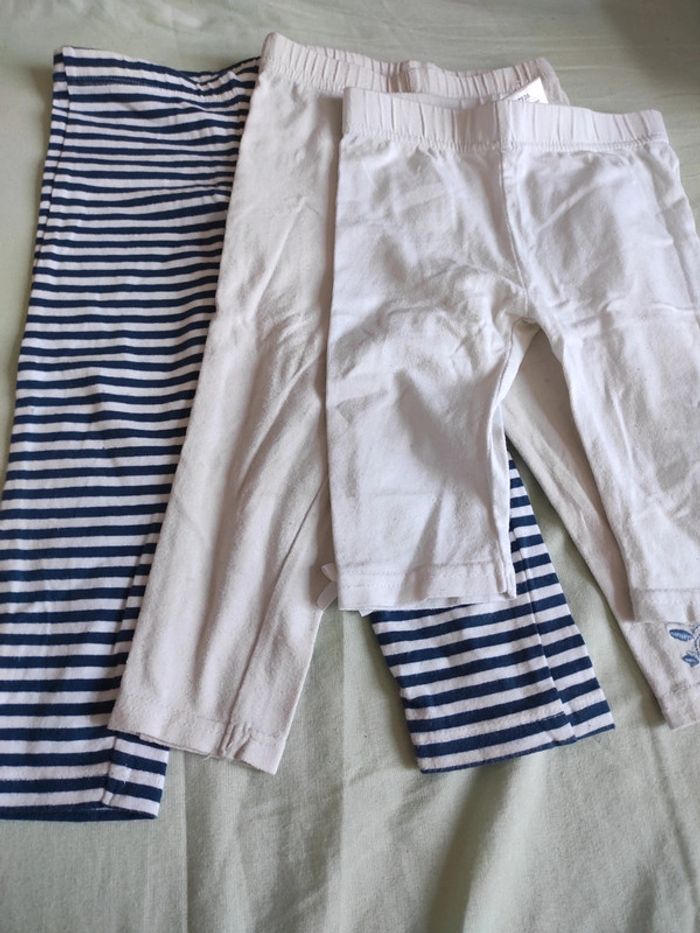 #tingvie18m Lot de 3 leggings taille 18 mois. Le long blanc est passé en couleur