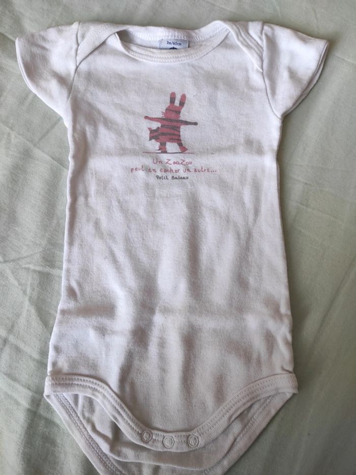 #tingvie3m Body manches courtes taille 3 mois petit bateau jauni au col