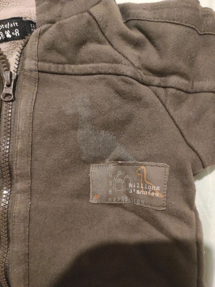 #tingvie12m Gilet zippé à capuche taille 12 mois tout compte fait. Le dinosaure s'est décollé.
