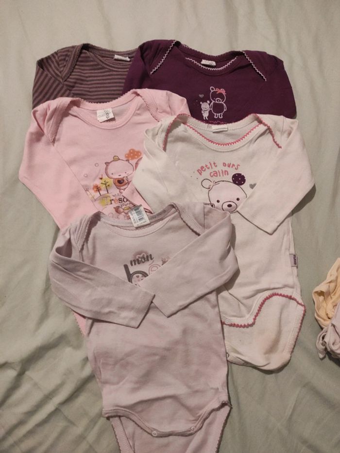 #tingvie12m Lot de 5 bodies manches longues Absorba. Le blanc et le violet ont des tâches voir photos, les autres sont en excellent état.