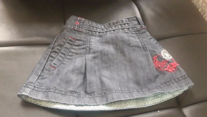 #tingvie3a Jupe en jean foncé Orchestra taille 3 ans. Élastiques et bouton pour ajuster la taille