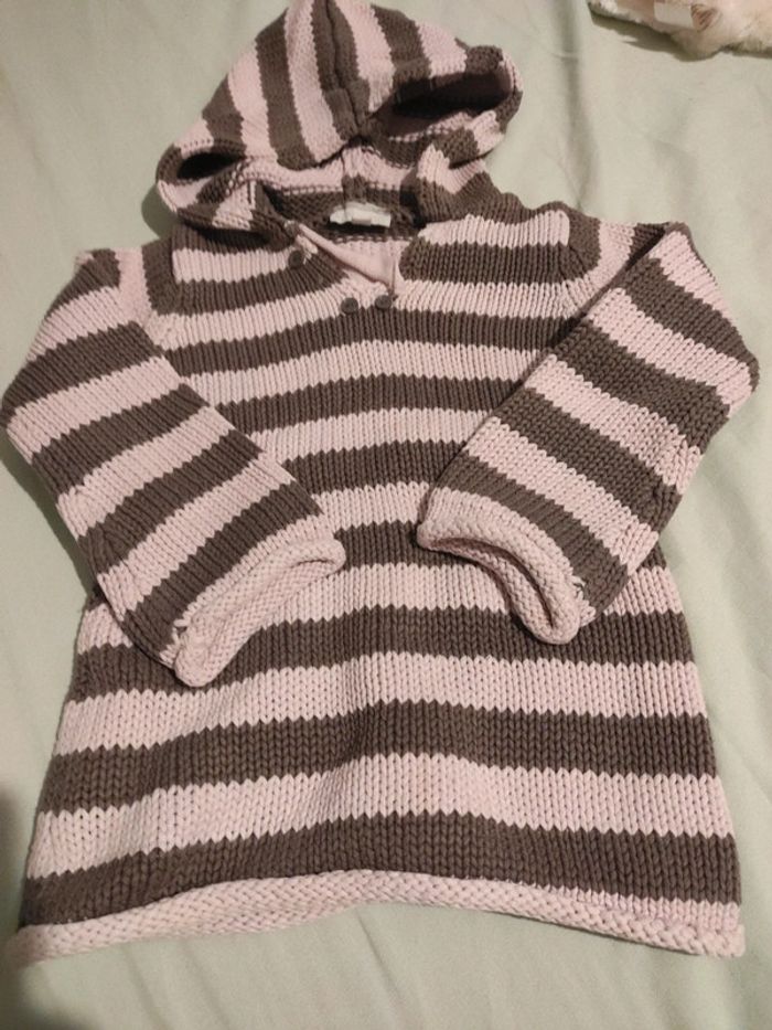 #tingvie3a Pull chaud à capuche taille 3 ans Kimbaloo Le col est décousu, ça peut facilement se réparer pour qui sait coudre.