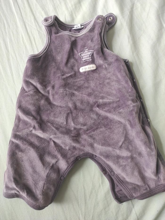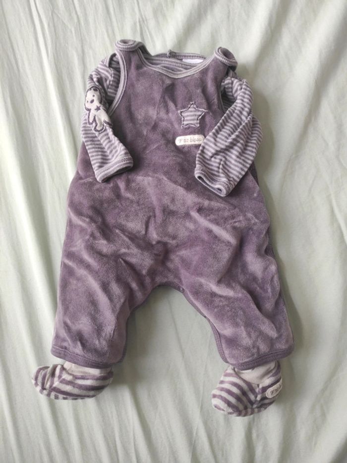 Ensemble de naissance p'tit bisou, un maillot manches longues une salopette et deux paires de chaussons en parfait état #tingvie0m