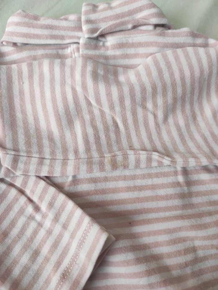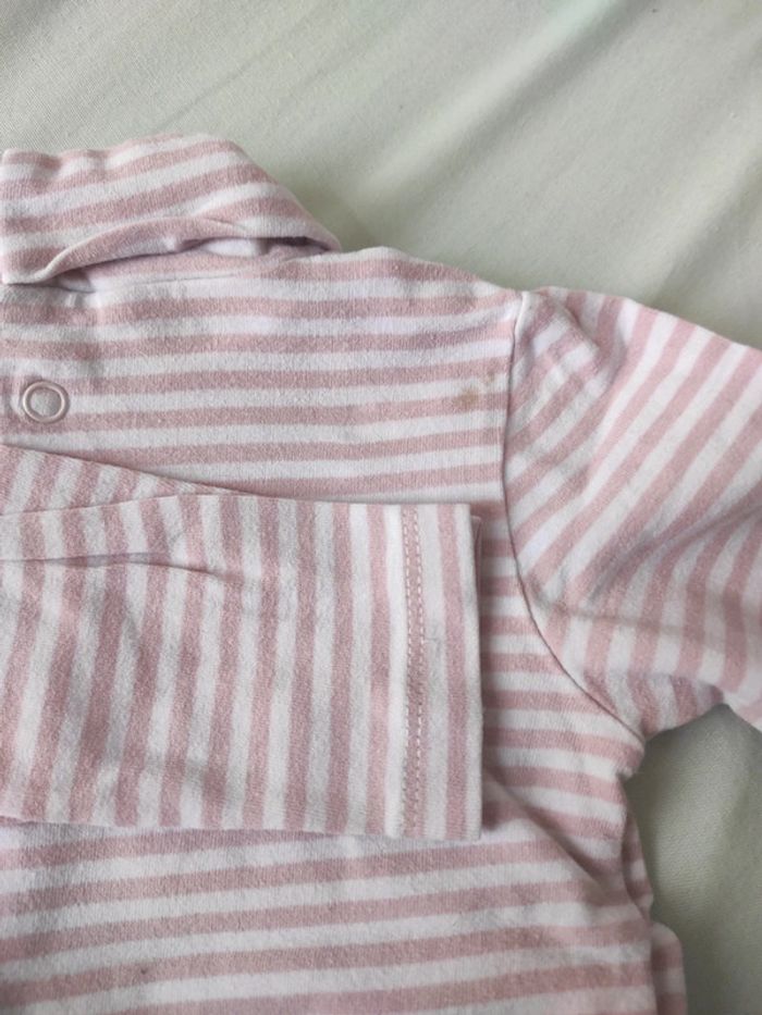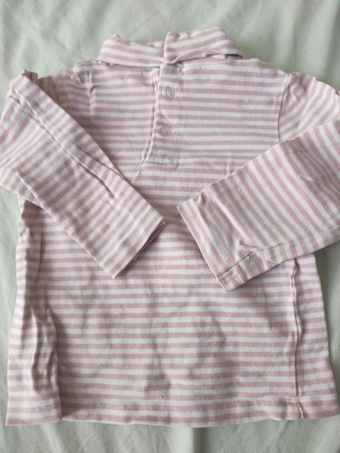 Maillot manches longues col roulé rayé rose pâle et blanc. Petite tache voir photos #tingvie12m