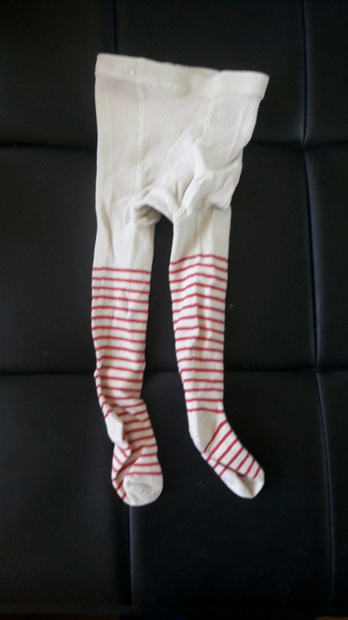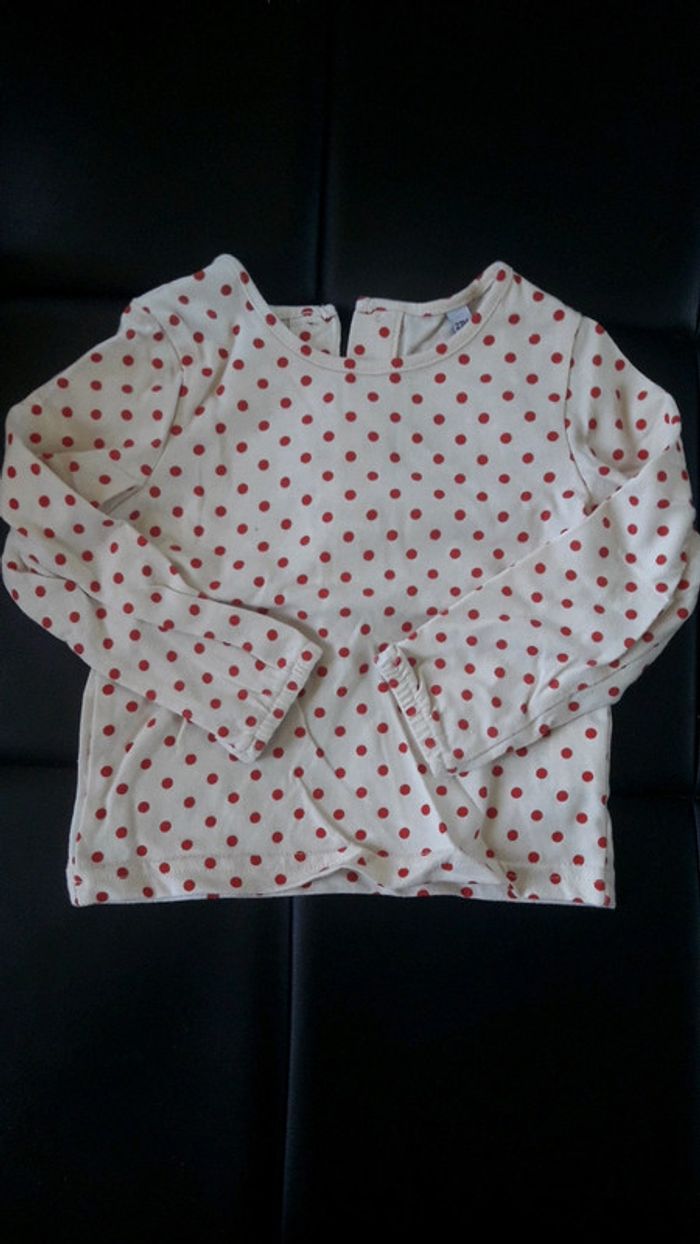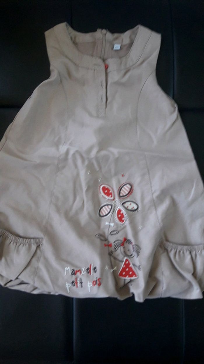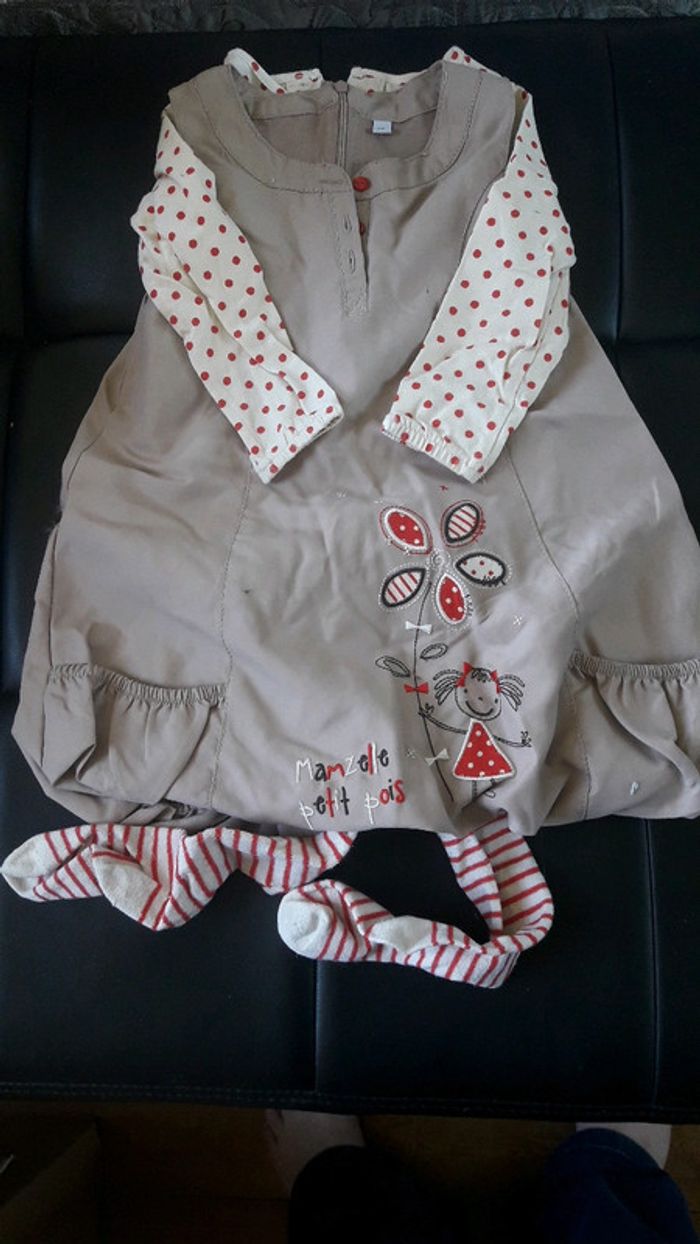 Superbe tenue couleur taupe et rouge taille 2 ans composée d'un maillot manches longues beige à pois, d'une robe taupe et de collants beige et rouge #tingvie2a