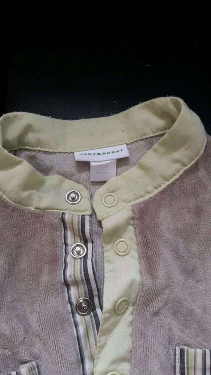 Pyjama Vertbaudet taille 9 mois marron et vert un peu bouloché au niveau du col #tingvie9m
