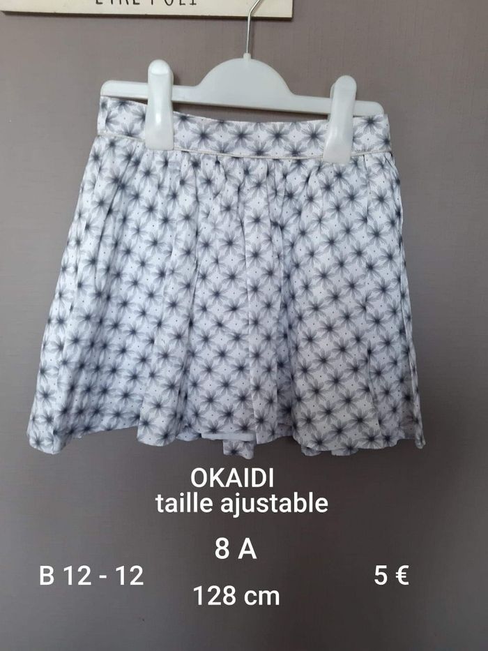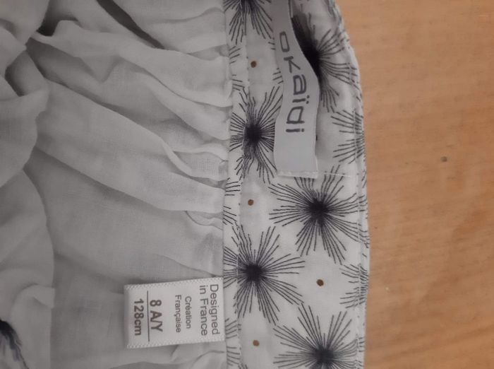 Jupe blanche feuilles marine OKAIDI Taille élastique Taille 8 ans 128 cm Prix 6 €