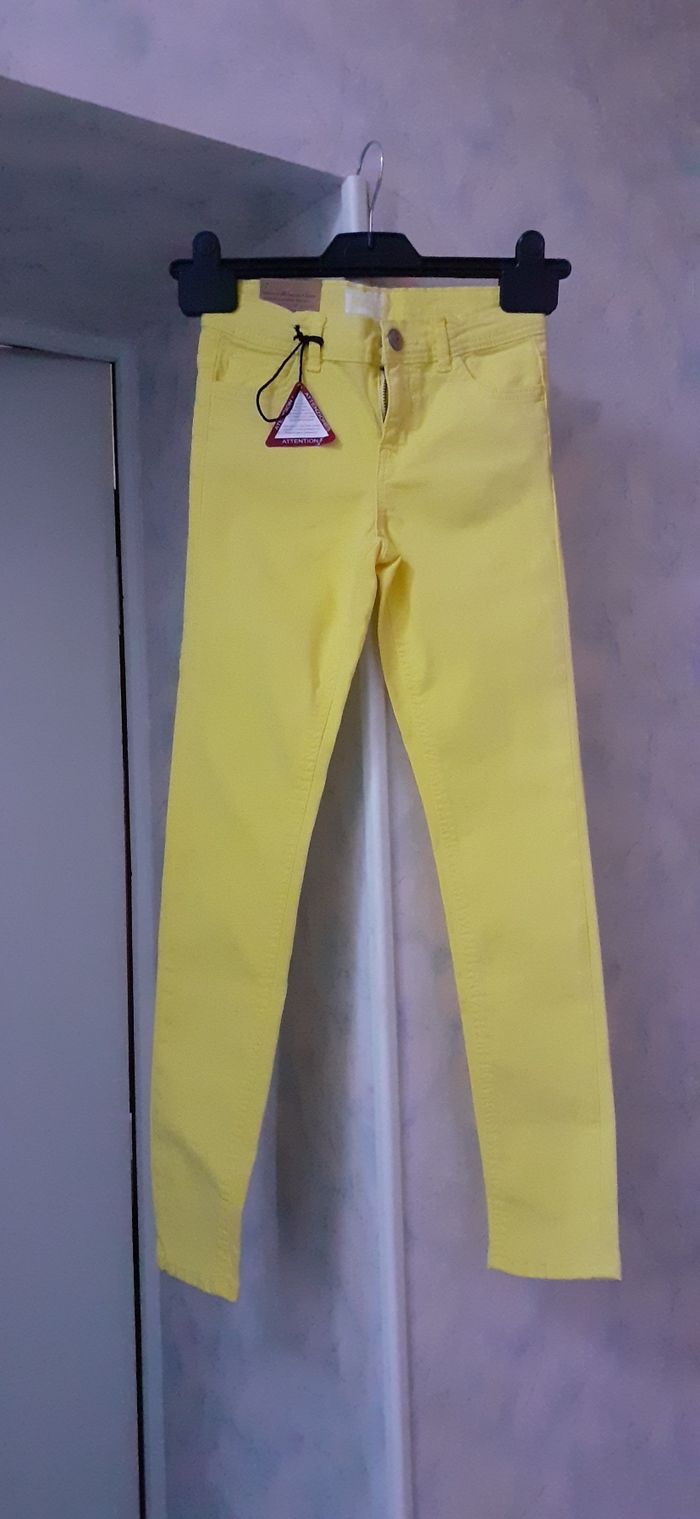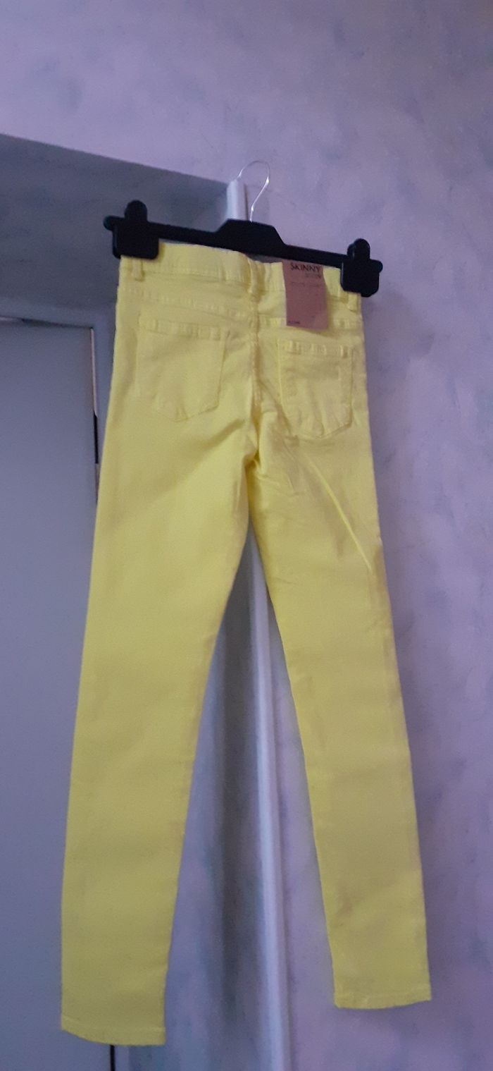 Vends un pantalon en toile coton et elasthanne jaune Kiabi 9 ans.