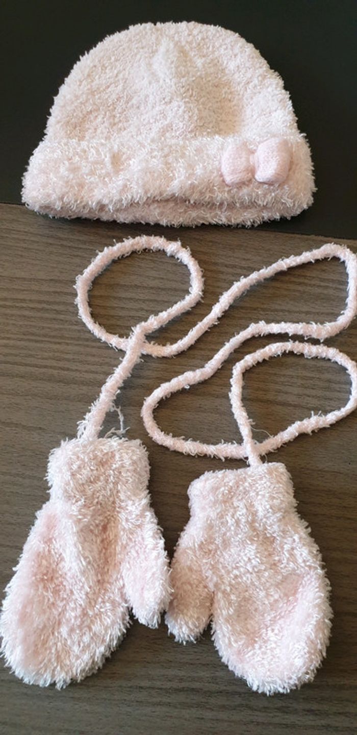 Lot bonnet rose et gants tout doux Parfait état Taille unique
