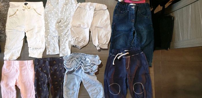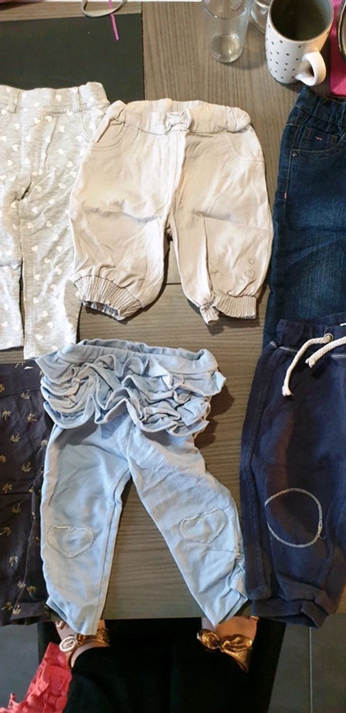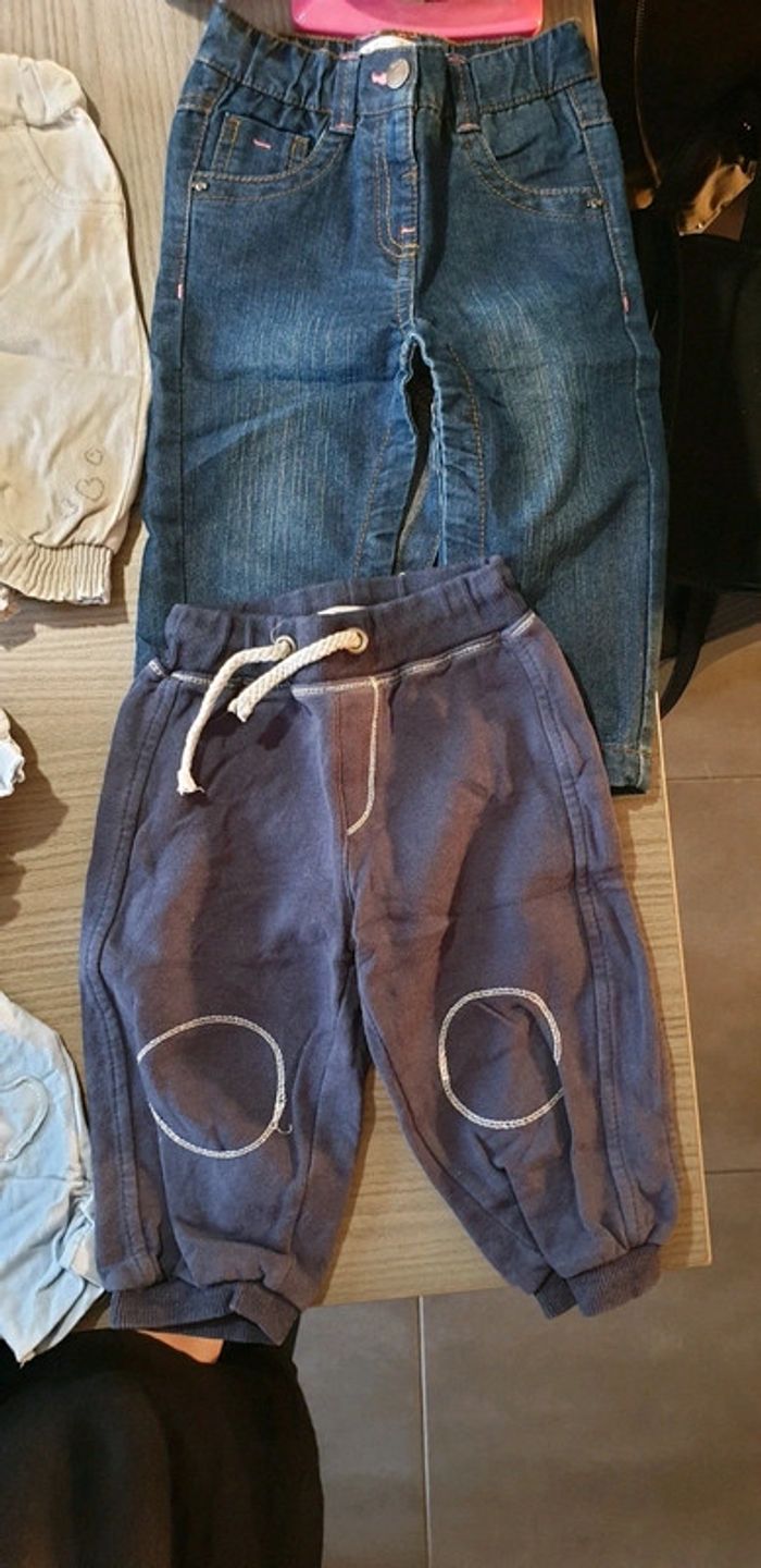 18 mois parfait état Le jeans a des pressions entre les jambes pour se fermer.( voir dernière photo) Leggings jeans jogging etc.. Marque Kitchoun, tex, kiabi, etc..