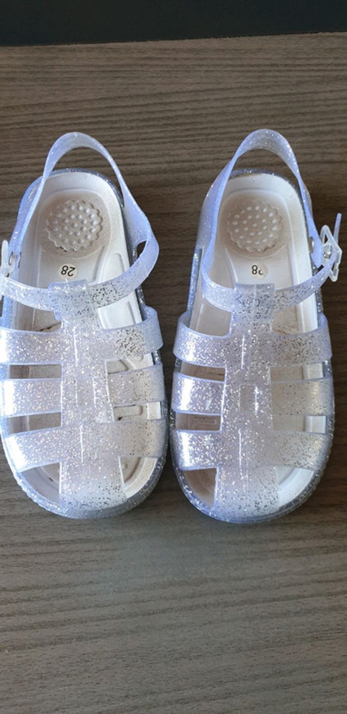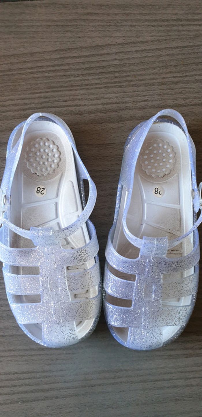 Sandalettes de plage transparente à paillettes taille 28 quelques traces d'usure (voir photos)