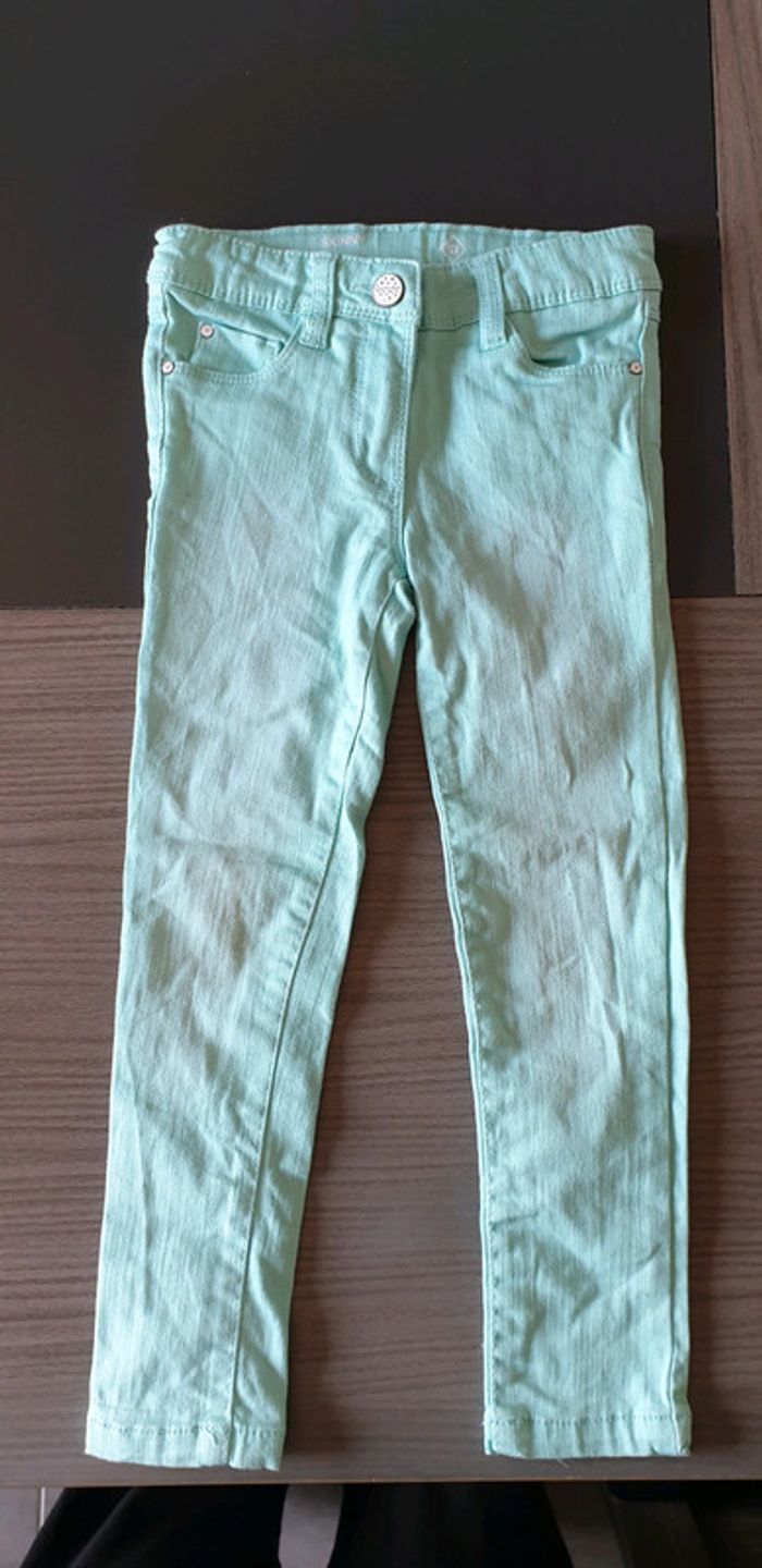 Jeans skinny vert d'eau T 4/5ans - photo numéro 1