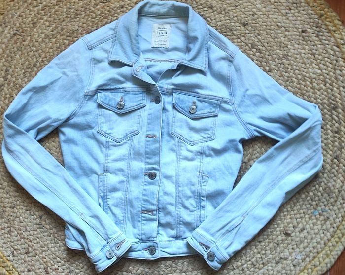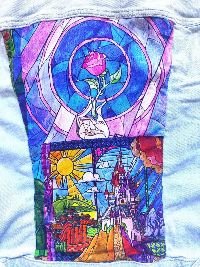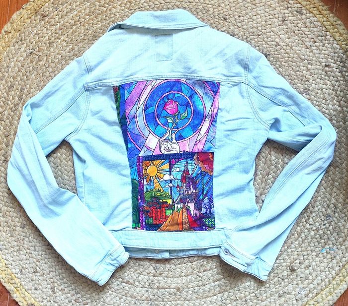 Veste en jean upcyclé, empiècement cousu main Taille M #beautyandthebeast #beautyandthebeastjacket