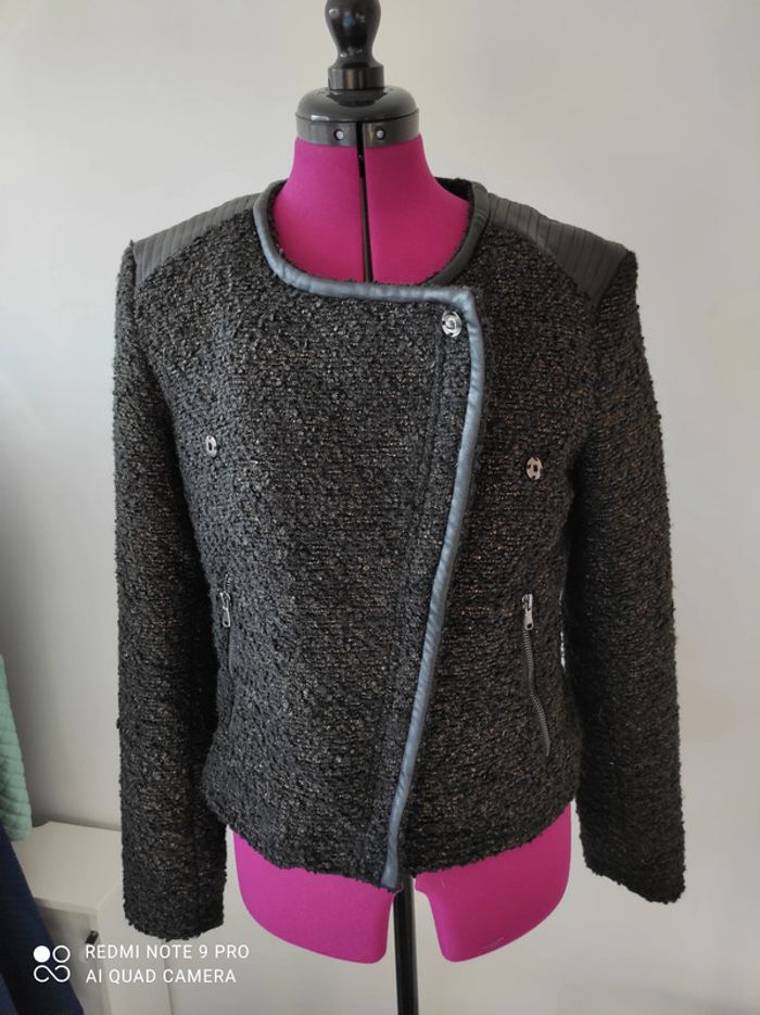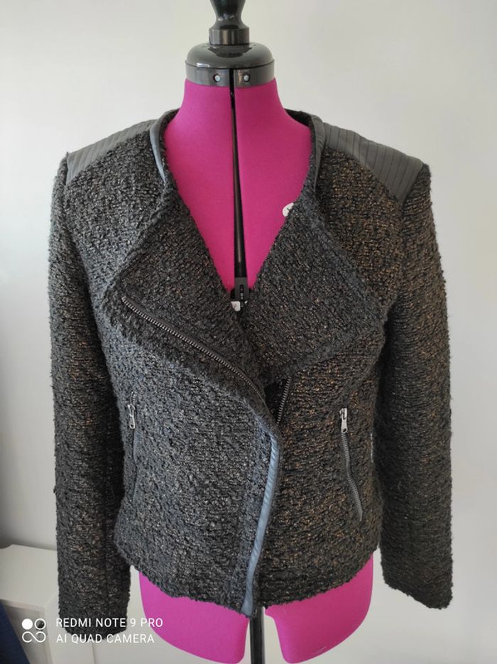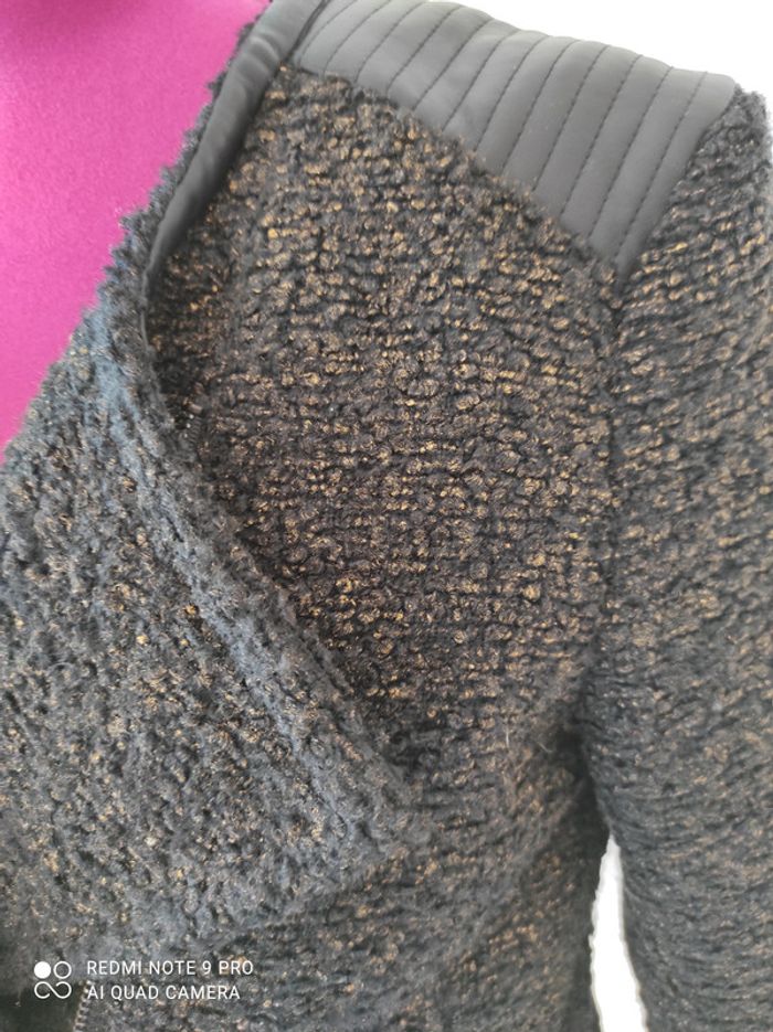 bi matiere, simili lainage noir doré #pupuceetsapucefemmemanteau