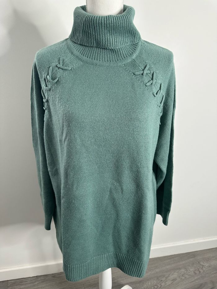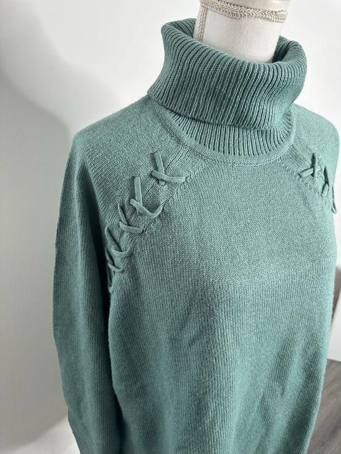Pull col roulé vert d’eau vert sauge liens croisés T50 5XL
