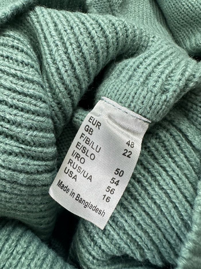 Pull - Excellent état - Taille 50 équivalent 5XL - Couleur vert d’eau identique aux photos - Col roulé - Détails liens croisés au niveau des clavicules - Ultra doux et chaud - 100% Acrylique Dimensions: - 60cm niveau aisselles - 68cm de long - Tissus stretch