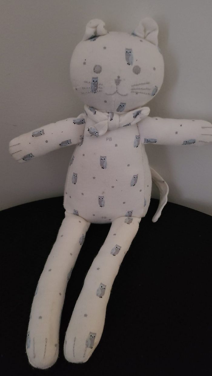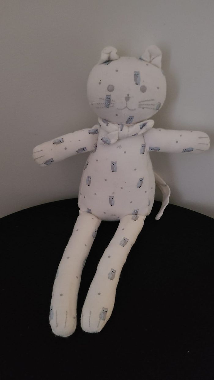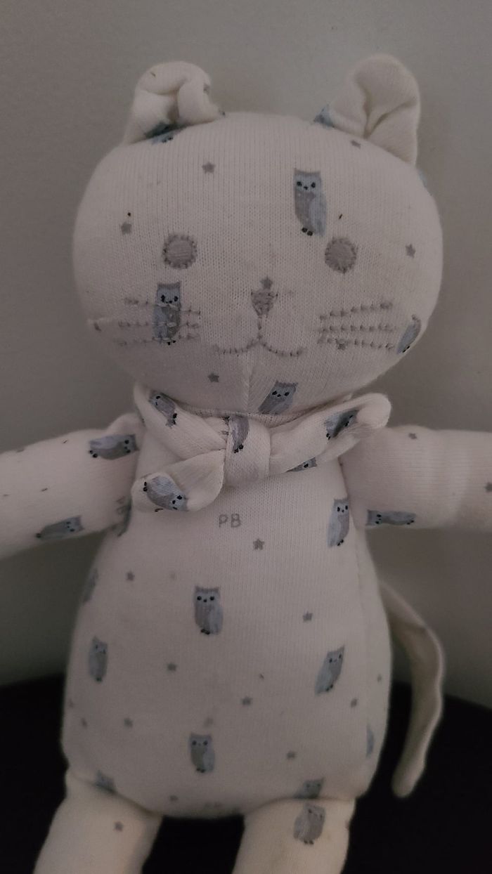 DOUDOU PETIT BATEAU CHAT BLANC HIBOU CHOUETTE PANTIN - photo numéro 4