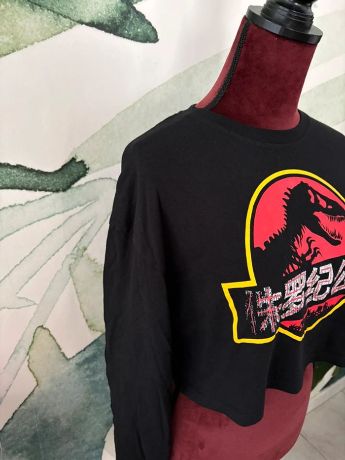 T shirt Bershka Jurassic Park Manches longues. Court Taille XS Neuf. Pour voir mes autres articles pour femme : #femmeludi2607 N'hésitez pas à faire des lots ✨ Réduction dès 2 articles ✉️Pas de remise en main propre / Pas d'envoi via vinted go