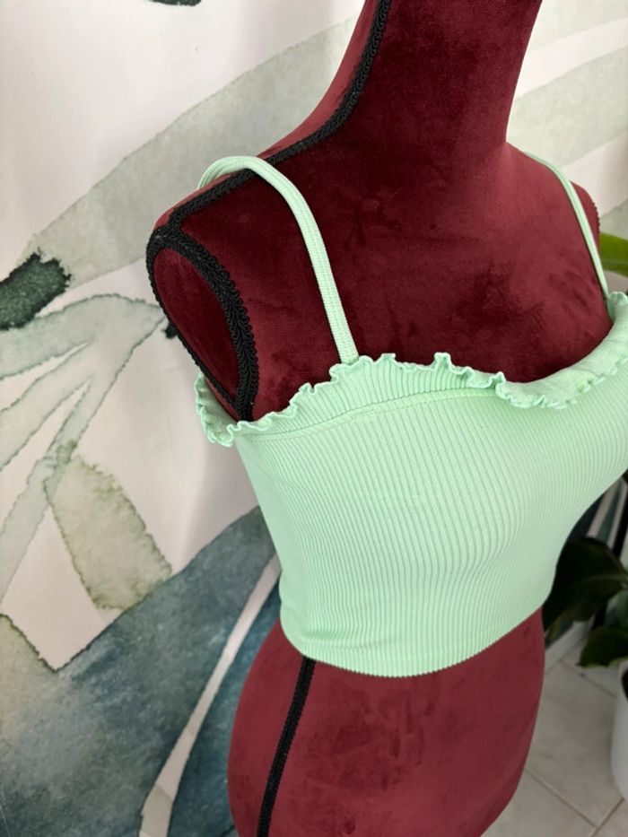 Top court Zara Vert Matière agréable Taille XS/S Neuf. Prix neuf : 9.95€ Pour voir mes autres articles pour femme : #femmeludi2607 N'hésitez pas à faire des lots ✨ Réduction dès 2 articles ✉️Pas de remise en main propre
