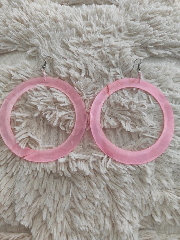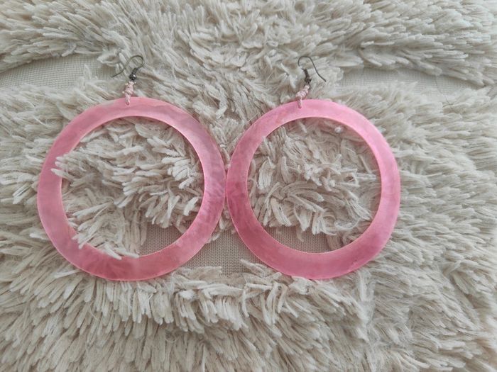 Grosses boucles d'oreilles pendantes en nacre rose 8cm de diamètre. Très bon état, jamais portées. Présence de petits défauts sur le nacre (voir dernière photo) N'hésitez pas à faire un lot💰 Réduction dès 2 articles Pour voir mes autres articles femme: #femmeludi2607 ✉️ Pas de remise en main propre / Pas d'envoi via Vinted go