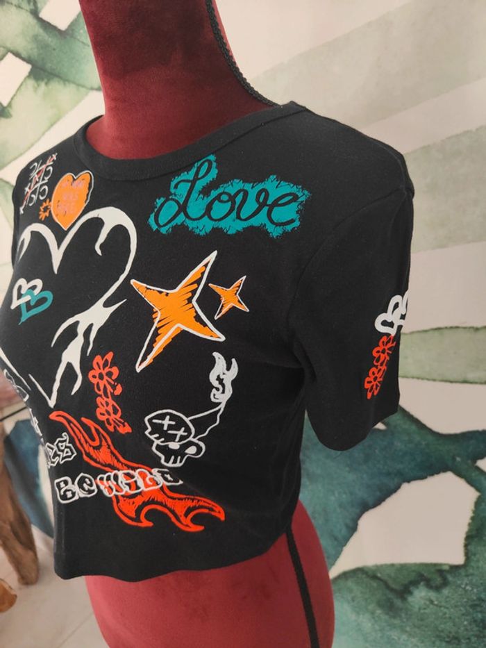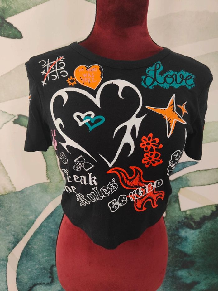 T shirt noir avec motifs Court à la taille Jennyfer Taille M (adapté à un S) Très bon état, peu porté N'hésitez pas à faire des lots ✨ réduction dès 2 articles Pour voir mes autres articles pour femme : #femmeludi2607 Pas de remise en main propre/ Pas d'envoi via Vinted go