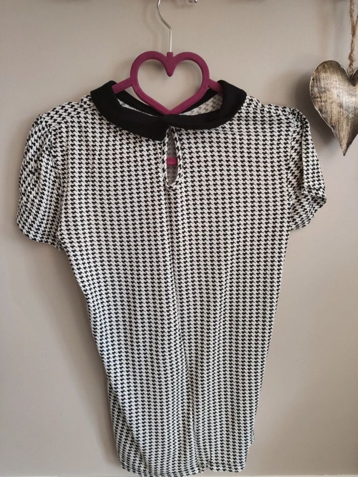T shirt Pimkie noir et blanc avec col noir. Motif type pied de poule Très bon état, peu porté. Taille S. Étiquette intérieure coupée. Pour voir mes autres articles femme : #femmeludi2607 N'hésitez pas à faire des lots ✨Réduction dès 2 articles 📨Pas de remise en main propre