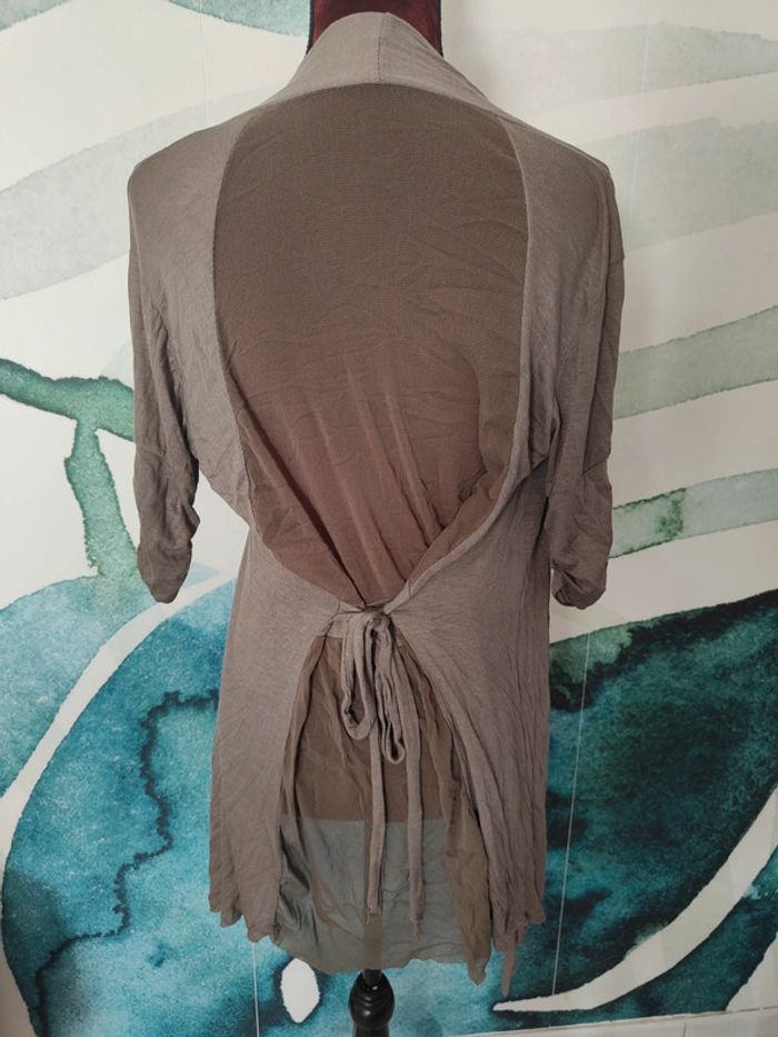Haut type gilet. Très léger. Matière très agréable. Plus long à l'avant que arrière. Arrière transparent. Couleur taupe. Très bon état,peu porté. Étiquette de la taille coupée, il s'agit d'un S. N'hésitez pas à faire un lot💰 Réduction dès 2 articles. Pour voir mes autres articles femme: #femmeludi2607 ✉️ Pas de remise en main propre