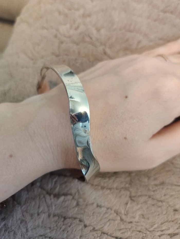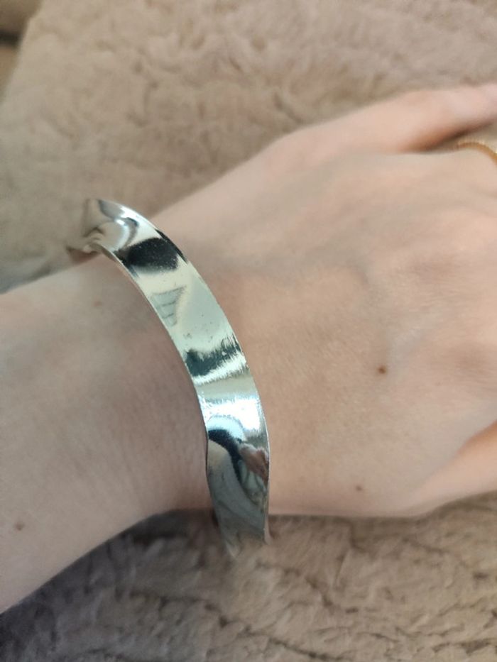 Bracelet argenté effet tordu. Très bon état. Diamètre d'environ 6.5cm. Pour voir mes autres articles femme : #femmeludi2607 N'hésitez pas à faire des lots ✨Réduction dès 2 articles 📨Pas de remise en main propre