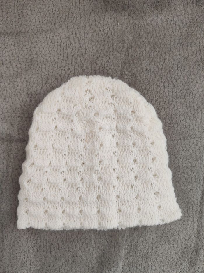 Bonnet fait main. Blanc. Très bon état. N'hésitez pas à faire des lots 💠 Réduction dès 2 articles. Pour voir mes autres articles pour bébé : #bébéludi2607 📨Envoi uniquement par Mondial Relay ou Chronopost Shop2shop