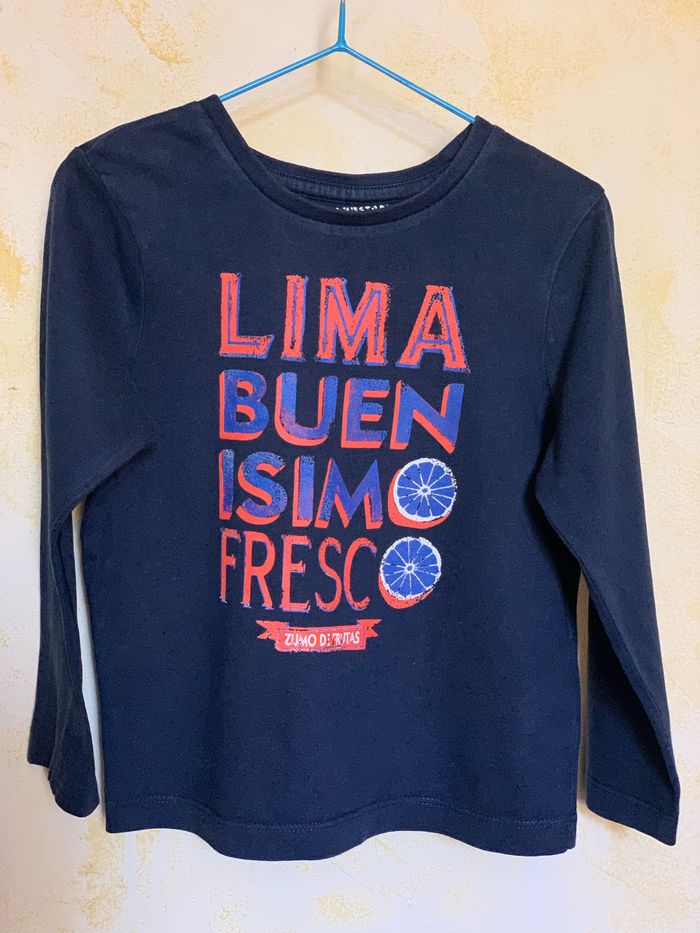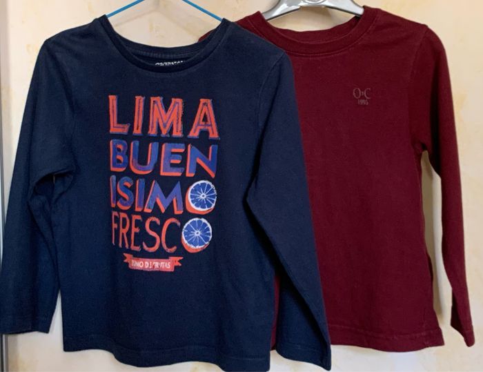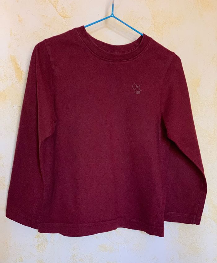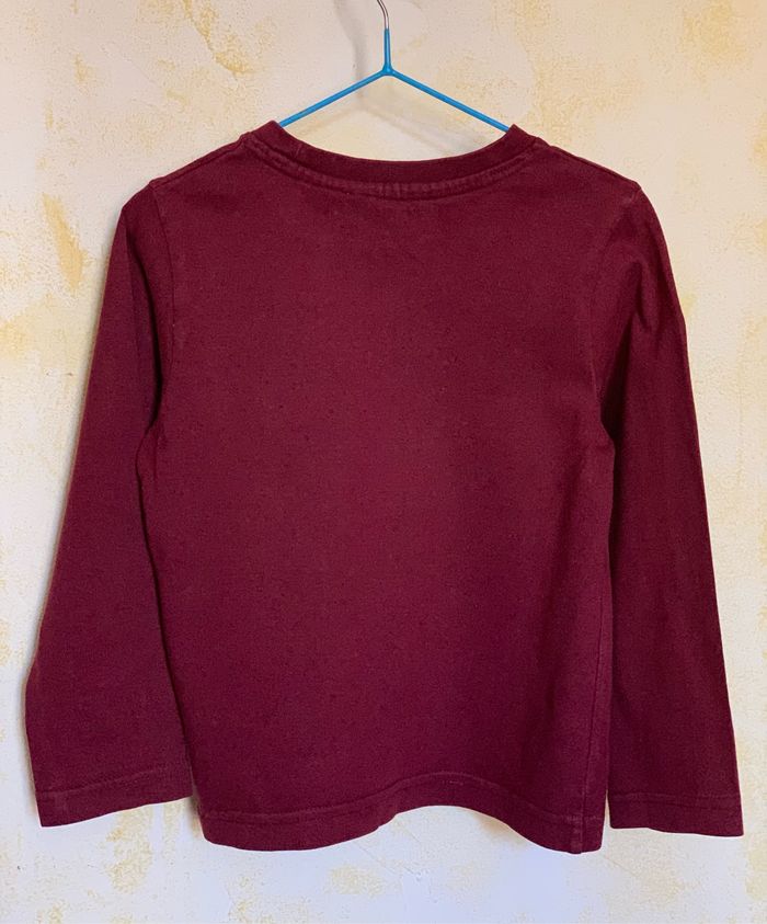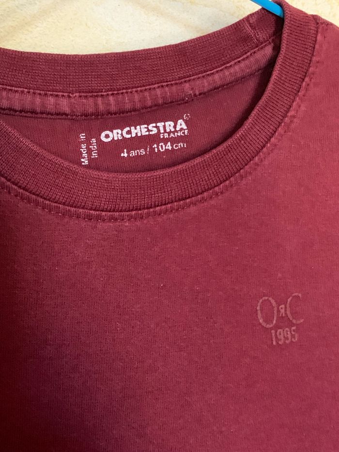Lot 2 t-shirts manches longues Orchestra 4 ans T104cm, 100% coton, - T-shirt bordeaux uni avec un logo sur la poitrine - T-shirt bleu imprimé devant #tshirtgarçon #lot #mancheslongues #4ans #Orchestra #cc_garcon4ans
