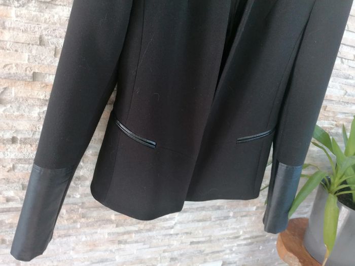 Veste noire femme Taille F40-E38 sur étiquette Pour moi, taille un 38. Manches style en cuir