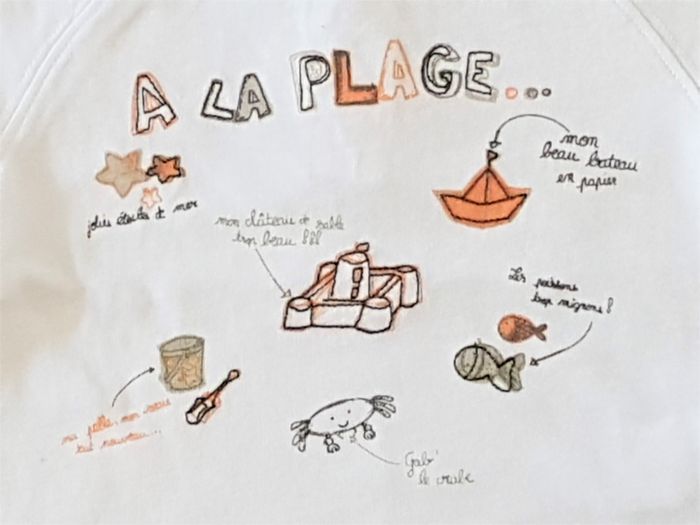 tee-shirt en coton à manches courtes avec boutons pressions au dos pour faciliter l'habillage. Motifs thème "plage"