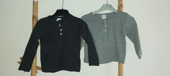 Duo/ Lot de 2 t-shirts manches longues Col boutons by H&M 6/9mois comme neufs - photo numéro 1