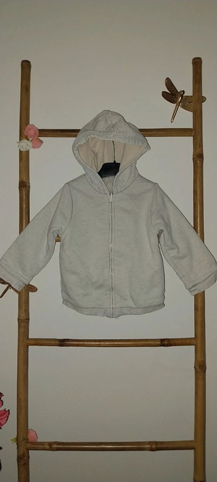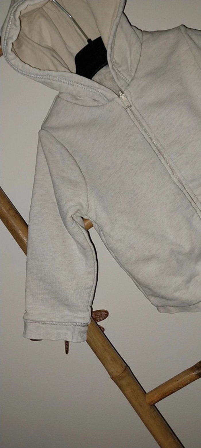 Veste à Capuche zippée fourrée pouls crème chiné by Obaibi 2 ans Très bon état - photo numéro 3