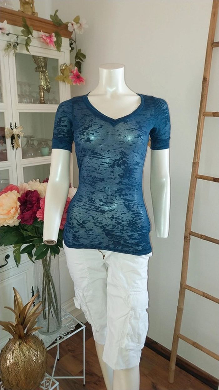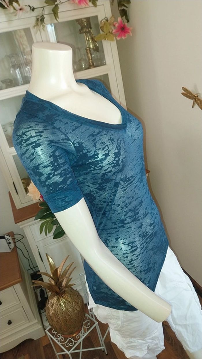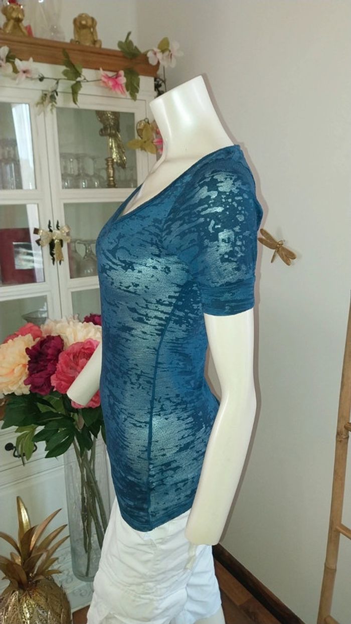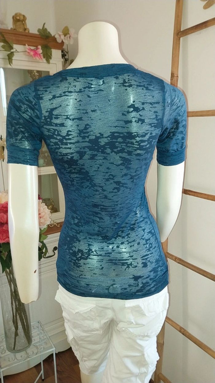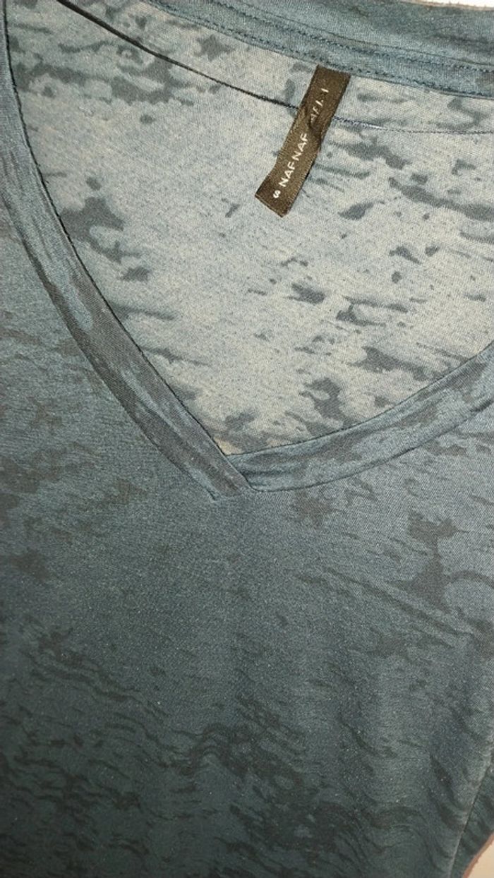 T shirt/ Top Naf Naf col V translucide bleu original Taille S Très bon état - photo numéro 10