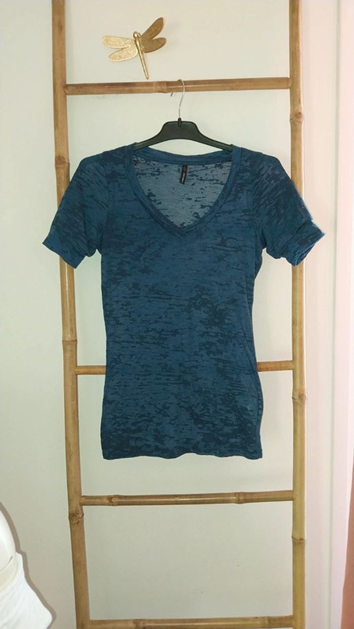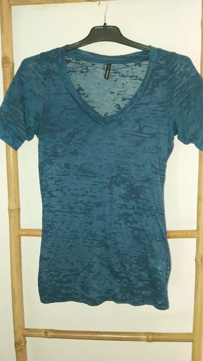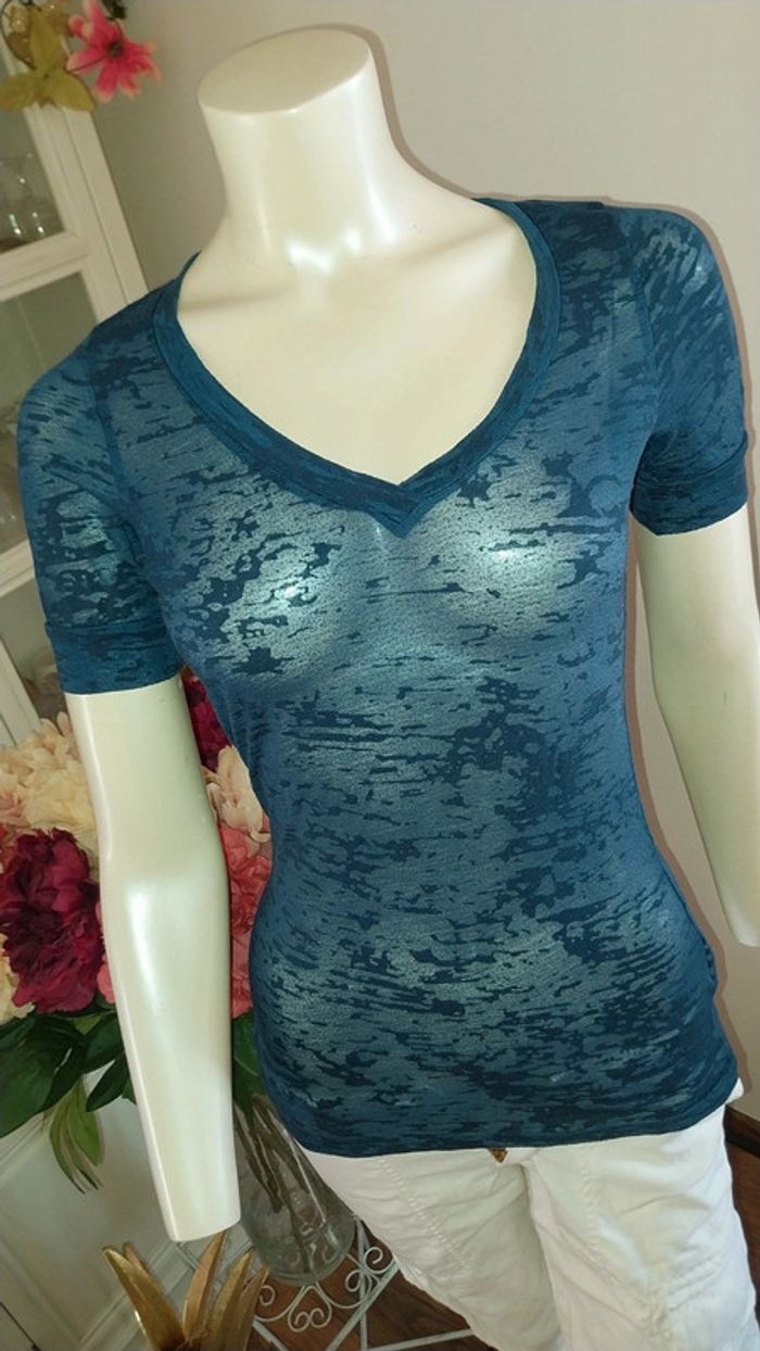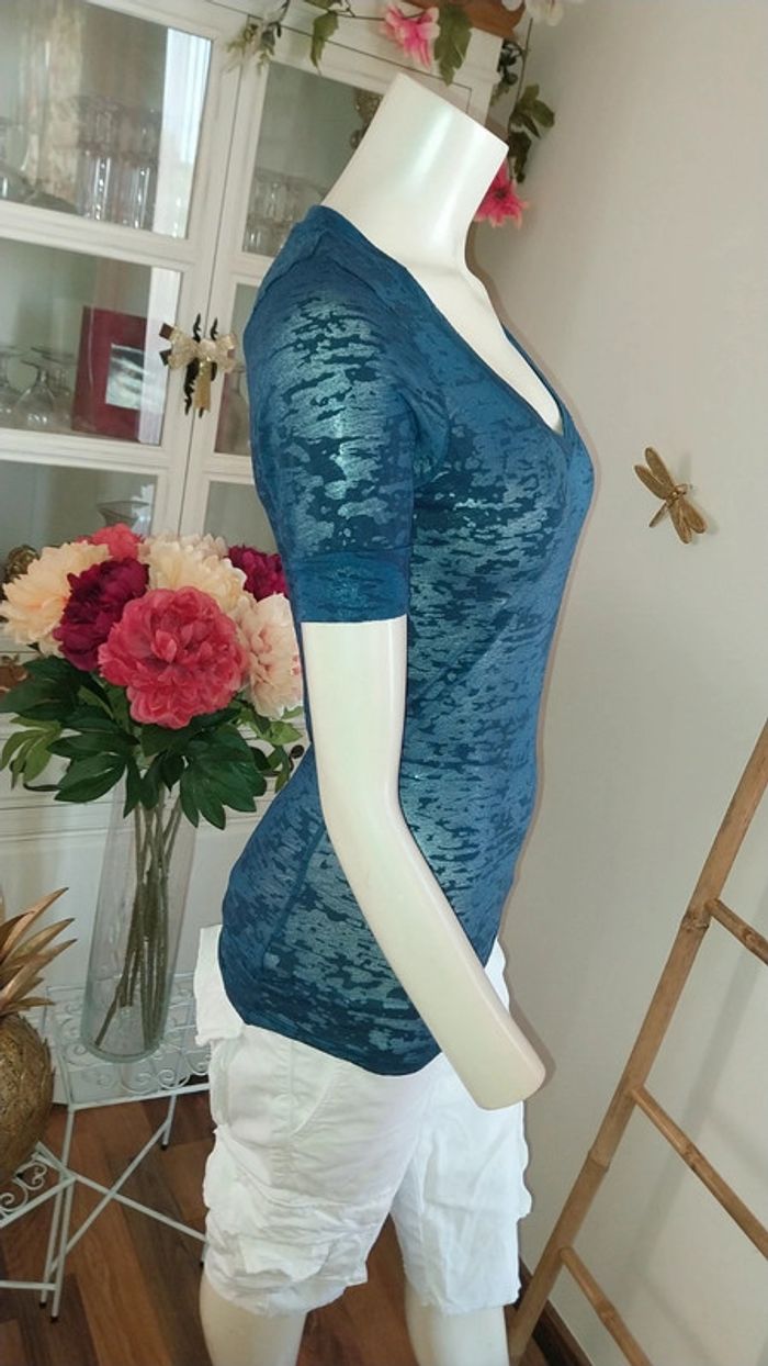 T shirt/ Top Naf Naf col V translucide bleu original Taille S Très bon état - photo numéro 6