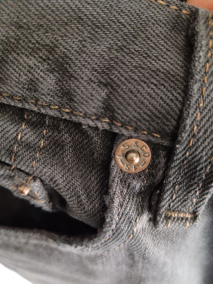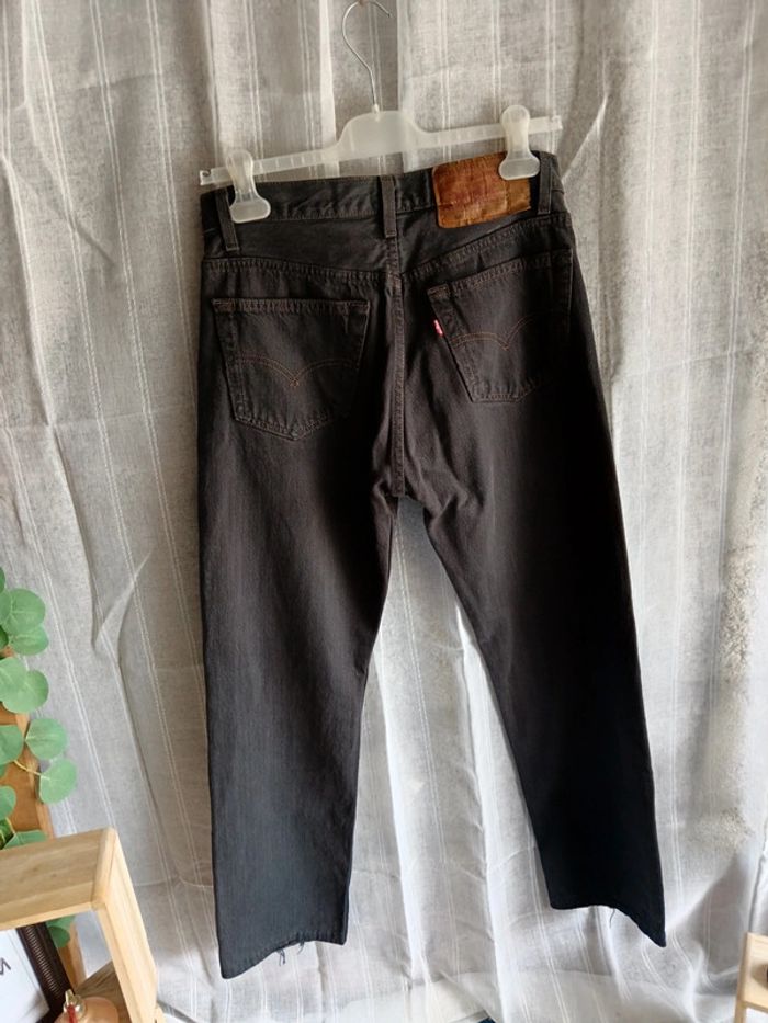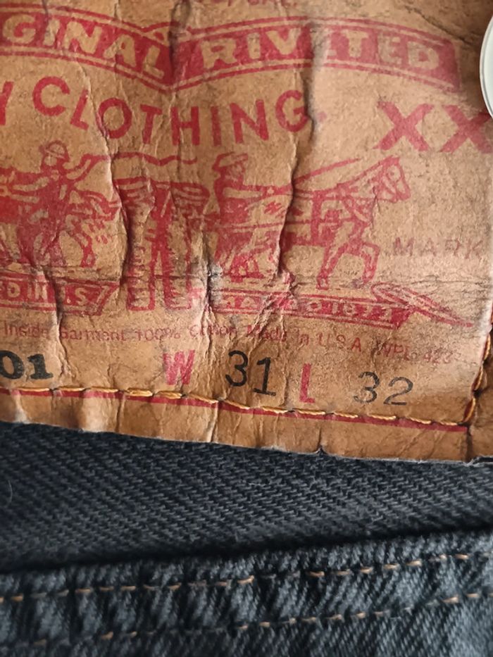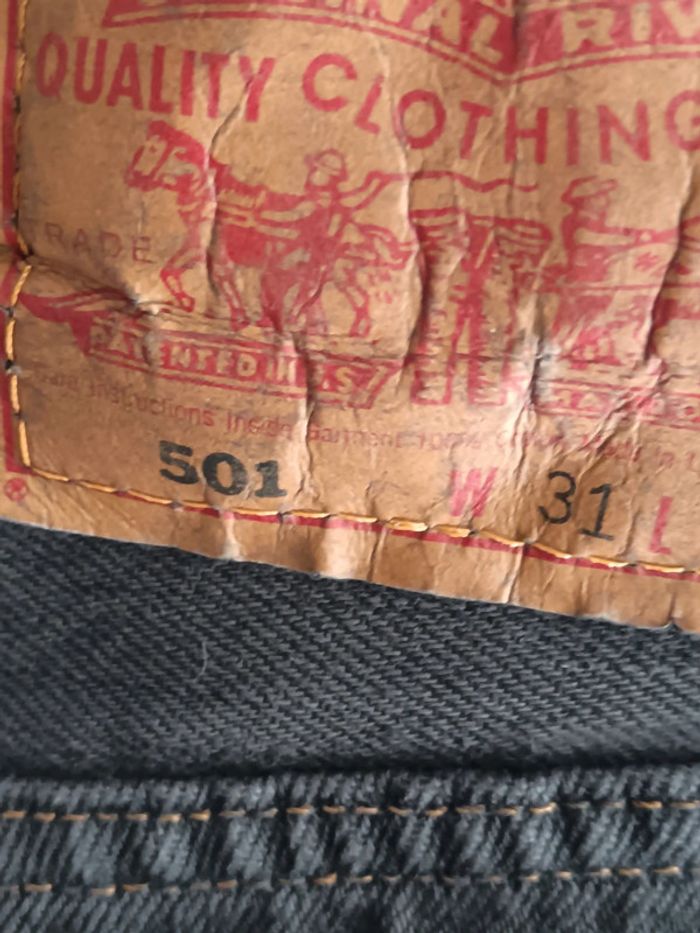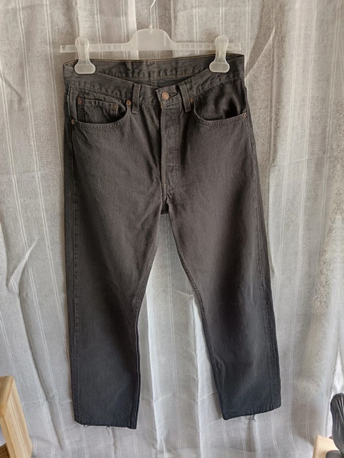 Jean Levi's 501 oui, mais Made in USA. Le jean que tout le monde s'arrache 😍 Noir, surment recoloré. Pas de trous ni taches, neammois usure dû au frottement des bas de pantalon très léger. Taille W31 vintage, conviendra à un 38, vérifier les mesures en photos. #calm38 #calmmhomme #levis501madeinusa #501usa