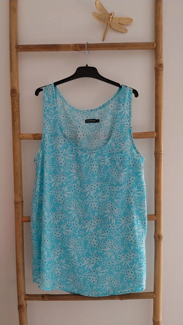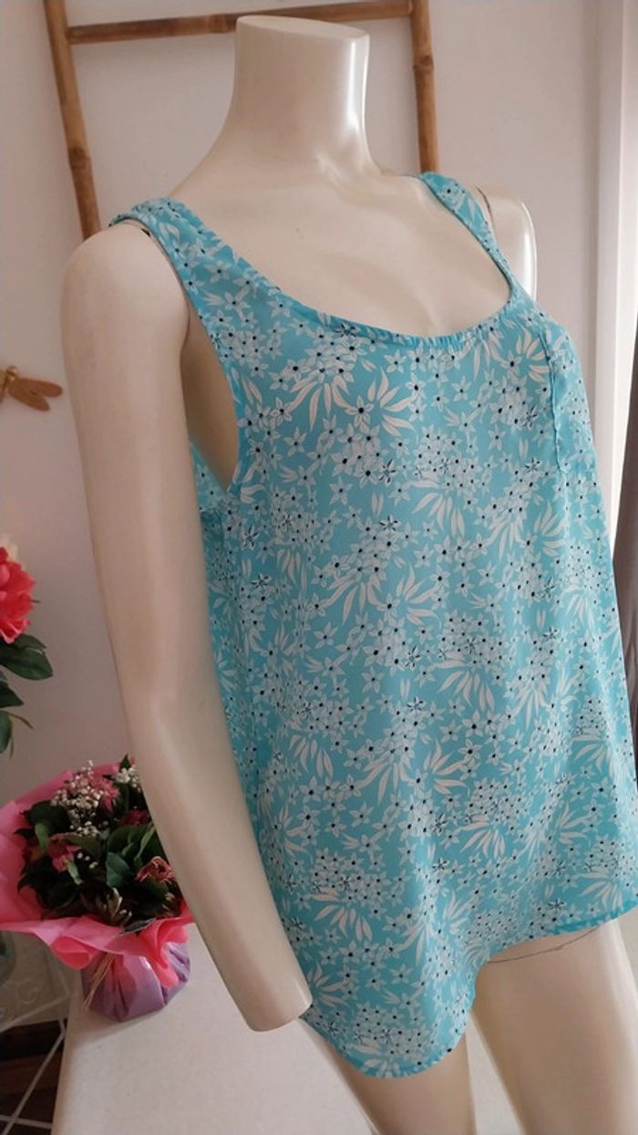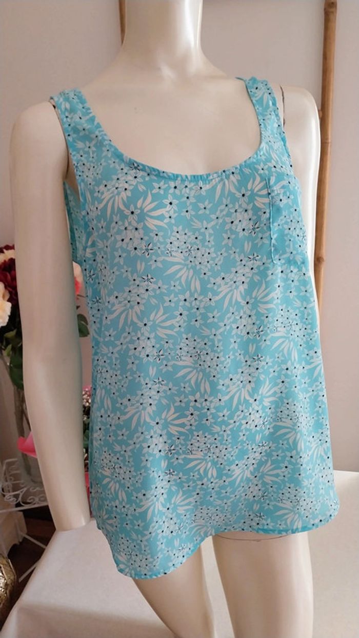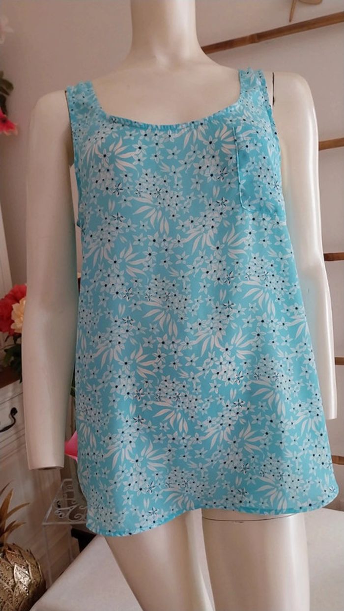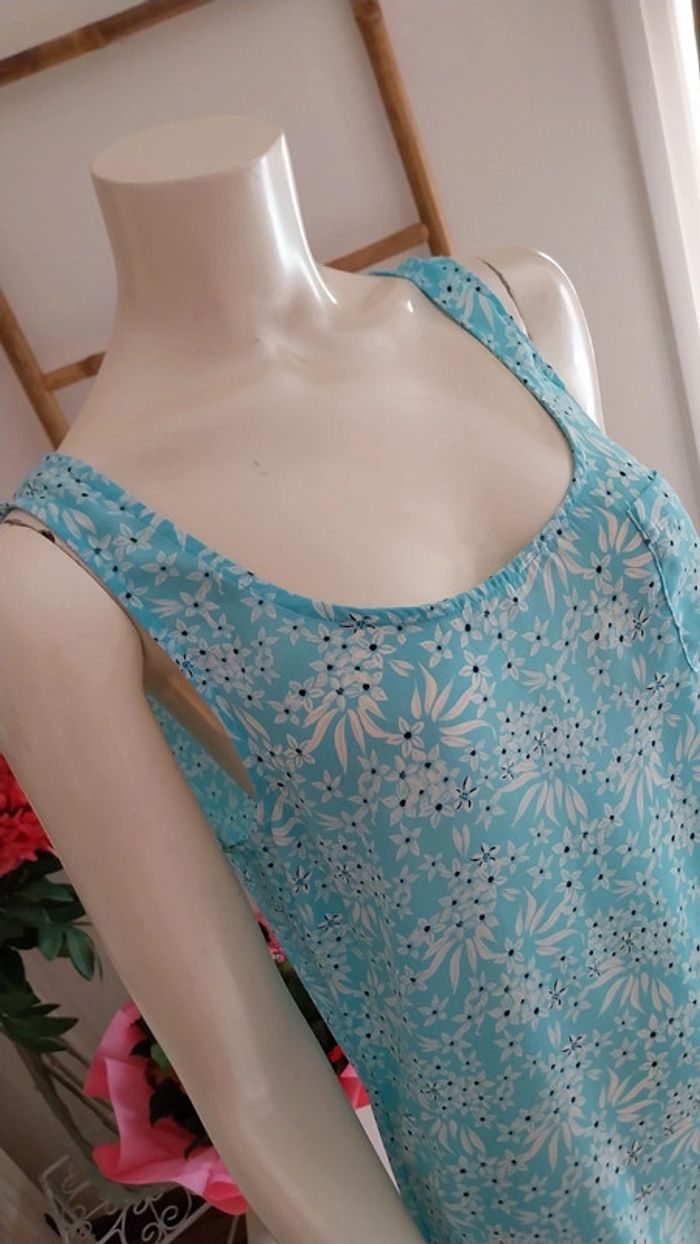 Top long fluide fleuri bleu clair état neuf Taille 38 - photo numéro 9