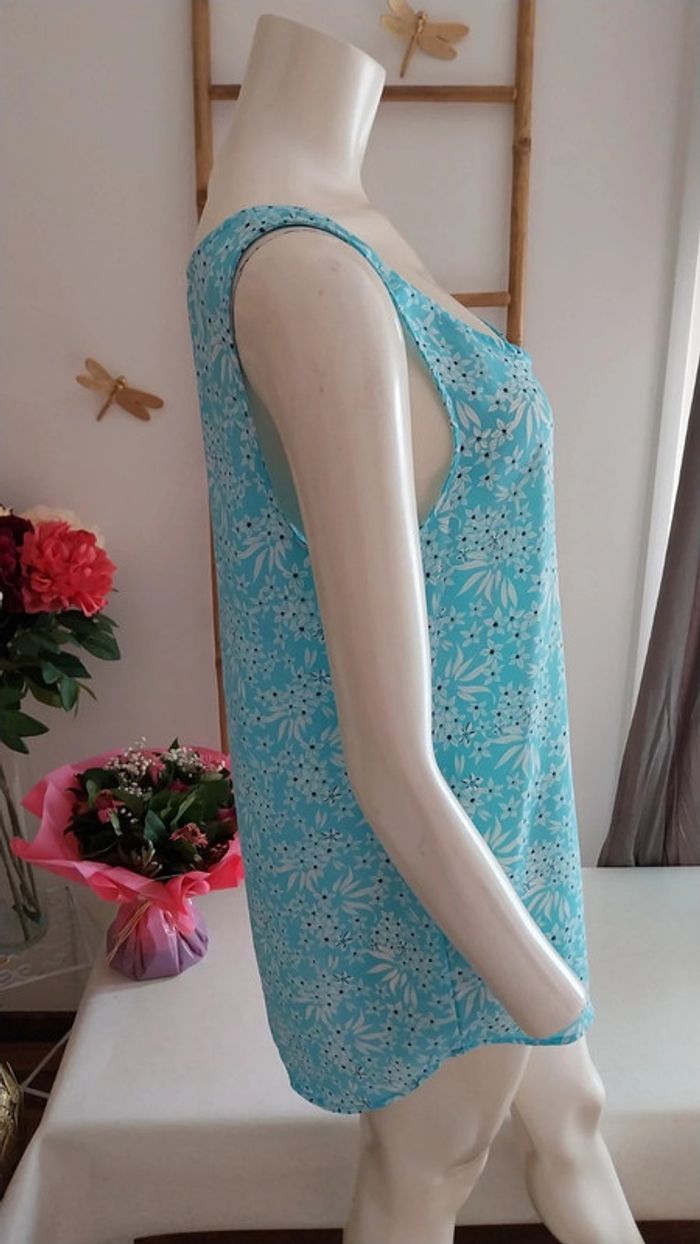 Top long fluide fleuri bleu clair état neuf Taille 38 - photo numéro 12