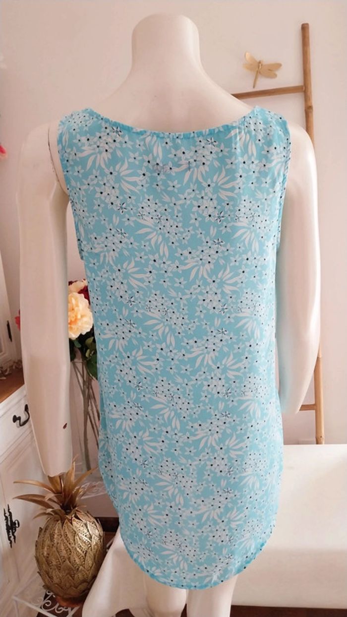 Top long fluide fleuri bleu clair état neuf Taille 38 - photo numéro 8
