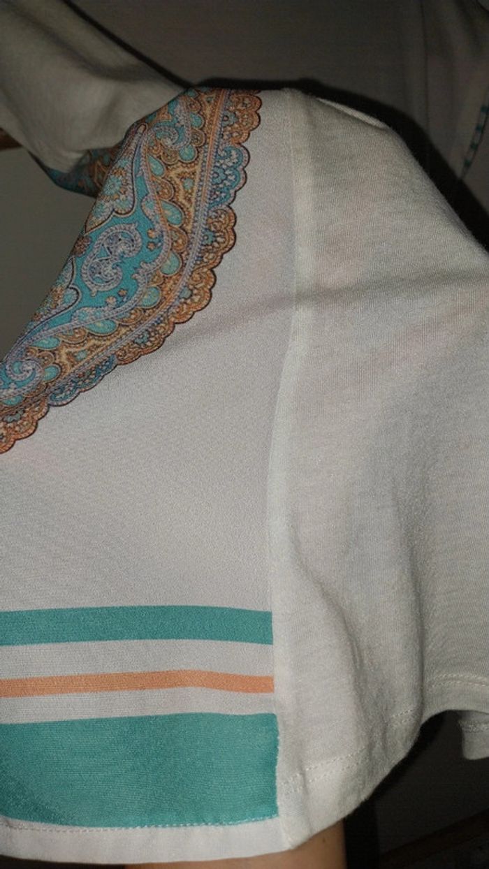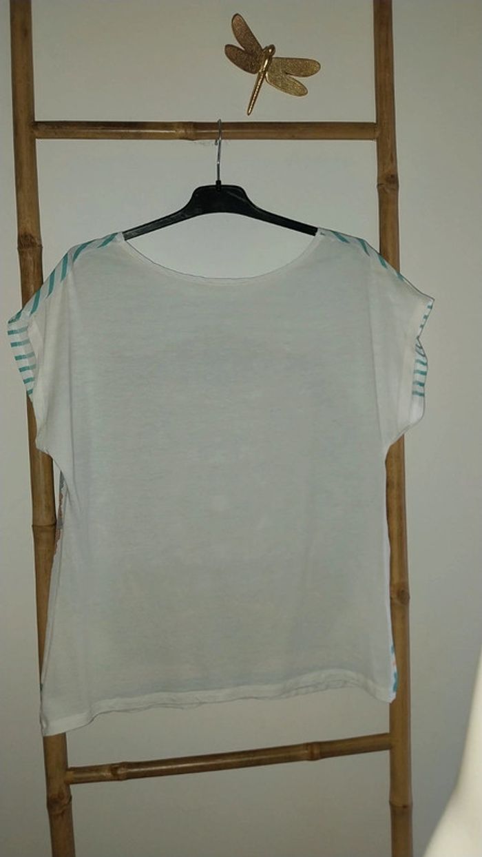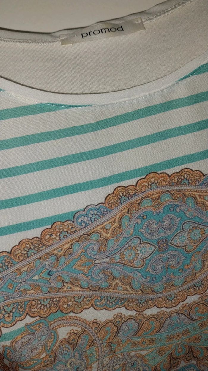 Top Promod blanc mariniere et imprimé Tons verts état neuf Taille 38 / M - photo numéro 12