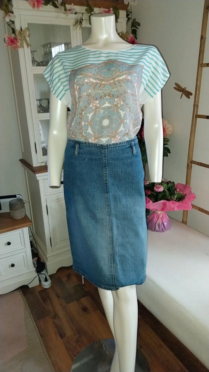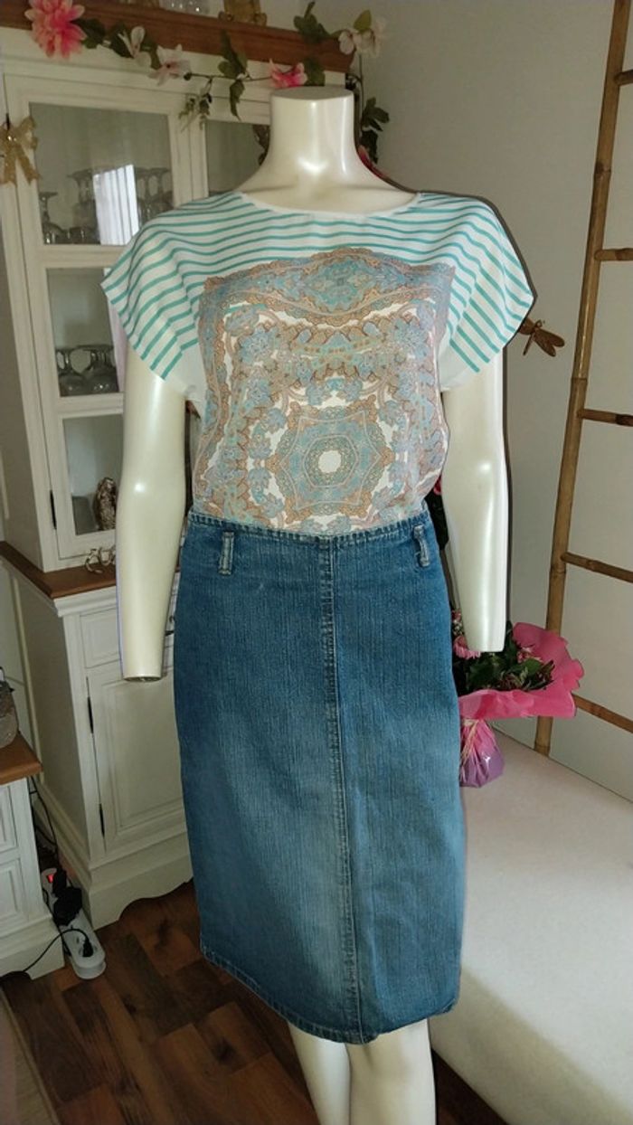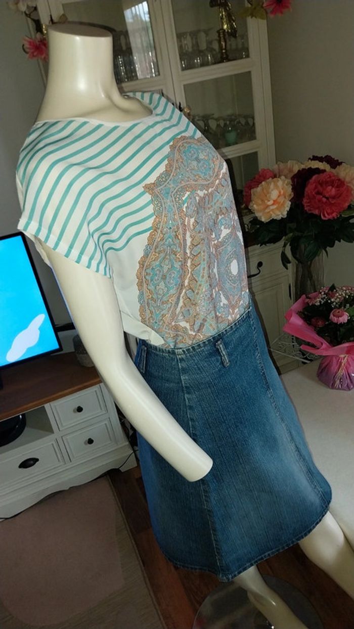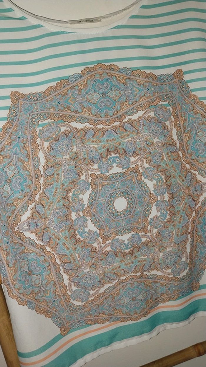 Top Promod blanc mariniere et imprimé Tons verts état neuf Taille 38 / M - photo numéro 14