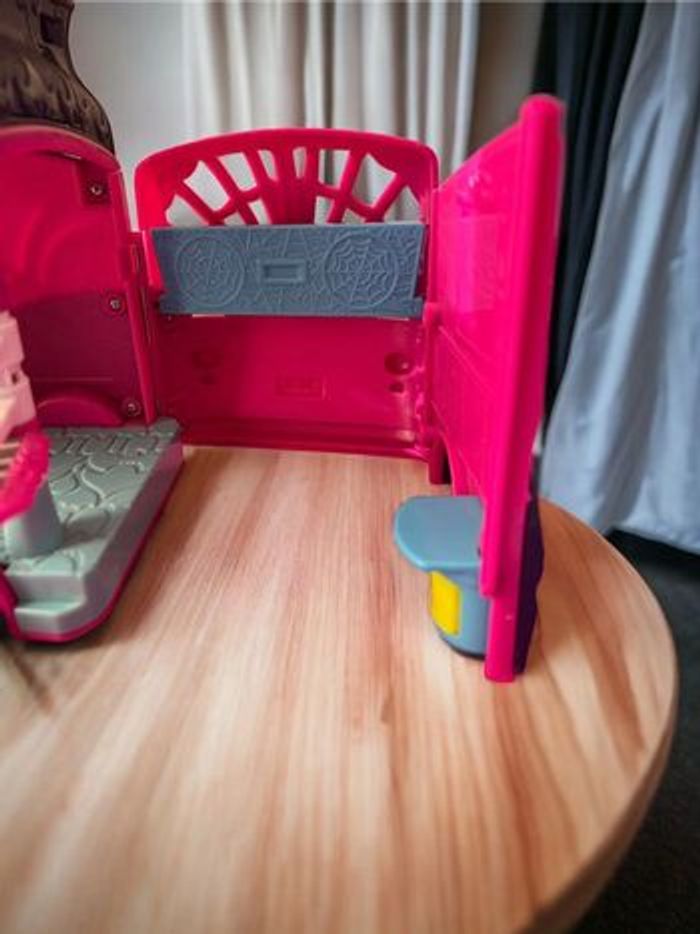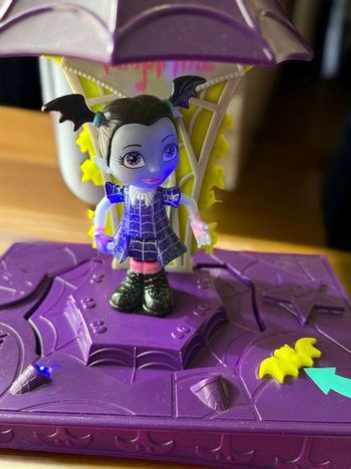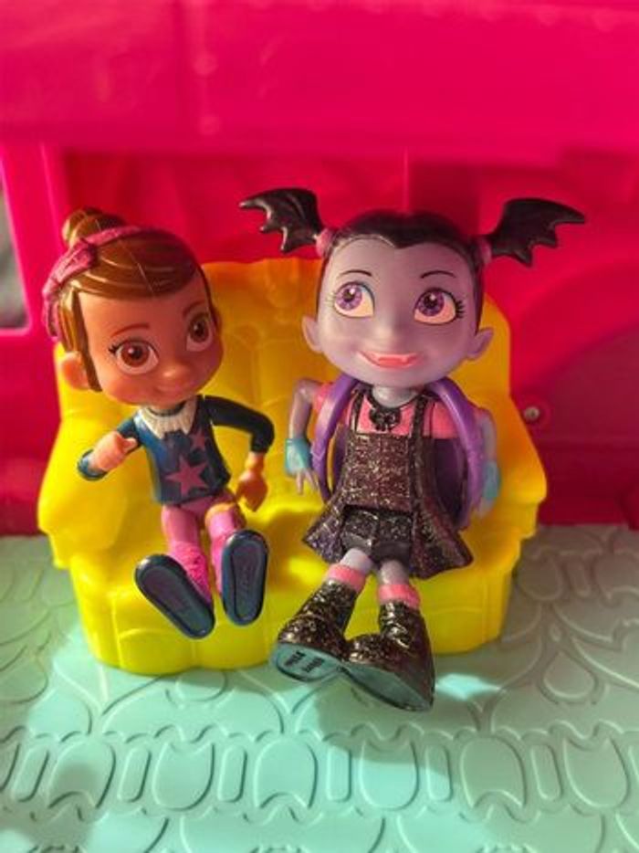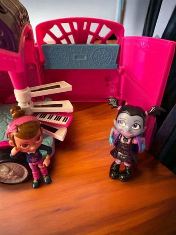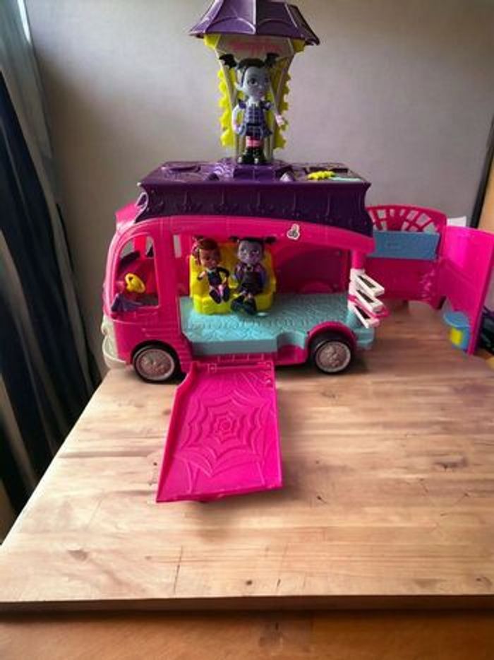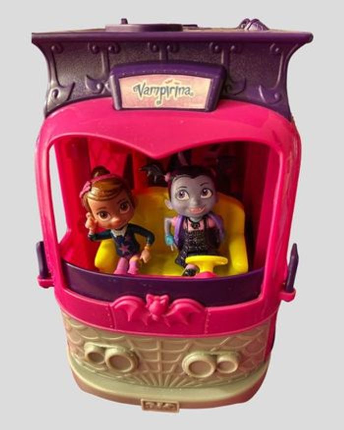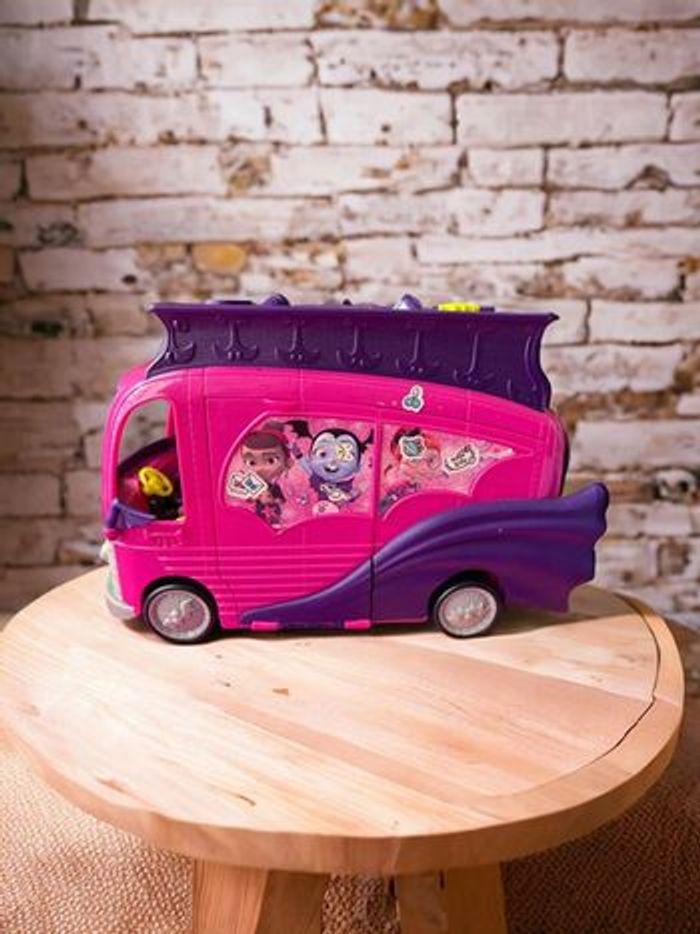 Disney Junior – Vampirina Van Flair Rock’n Jam Touring – 2018 Jouet original Disney Vampirina avec : • Camionnette scène musicale • 3 figurines incluses • Sons, musiques et lumières fonctionnels ⚠️ À noter en toute transparence : • Le trône de Vampirina ne monte plus automatiquement • Les effets lumineux et sonores fonctionnent via le bouton chauve-souris Dimensions approximatives : 29 x 18 x 13 cm État général : • Bon état visuel • Jouet propre et stable • Vendu sans autres accessoires Idéal pour : • Fans de Vampirina • Jeu d’imagination • Petit cadeau Disney à prix doux