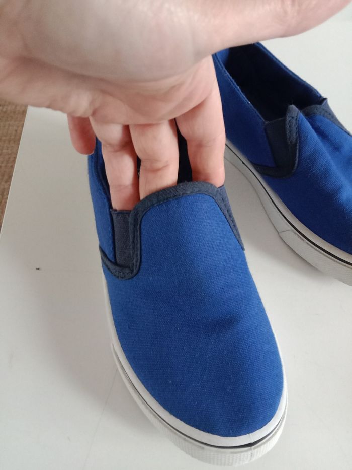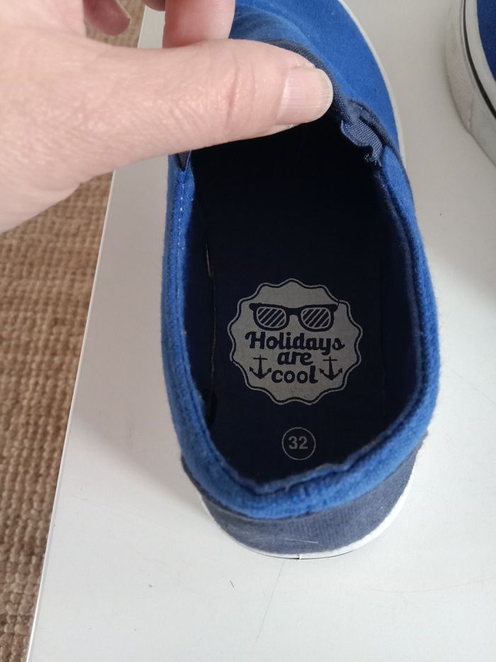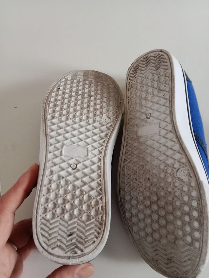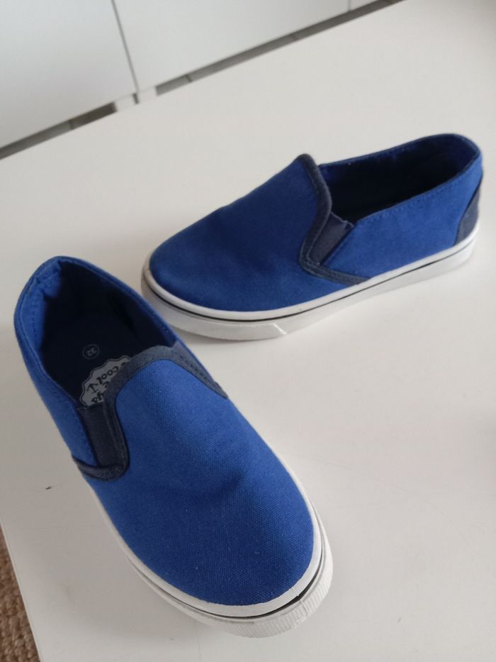 Ballerines garçon ,taille 32 portées une seule fois ,pas d'usure sous les semelles juste salies.pas d'usure également a l'intérieur qui est propre ,pas de trou.en très bon état.