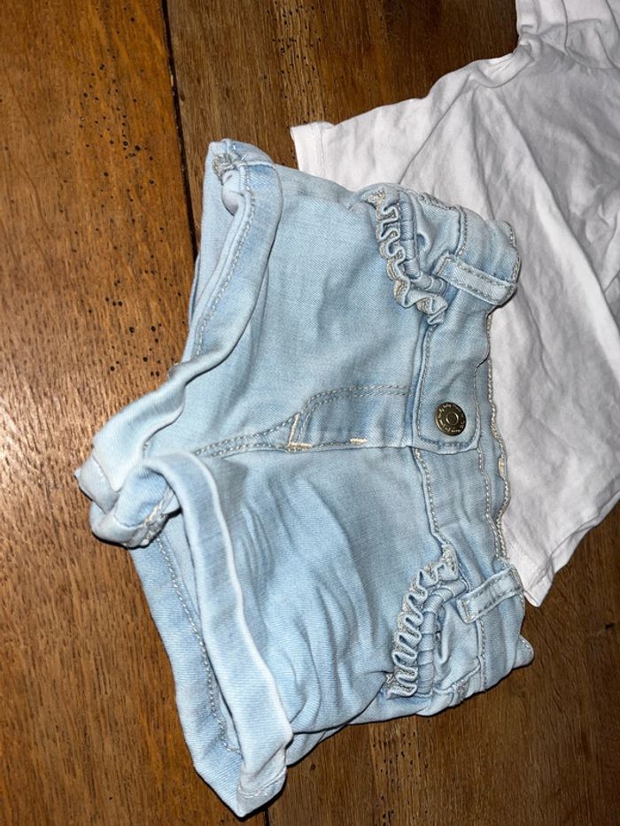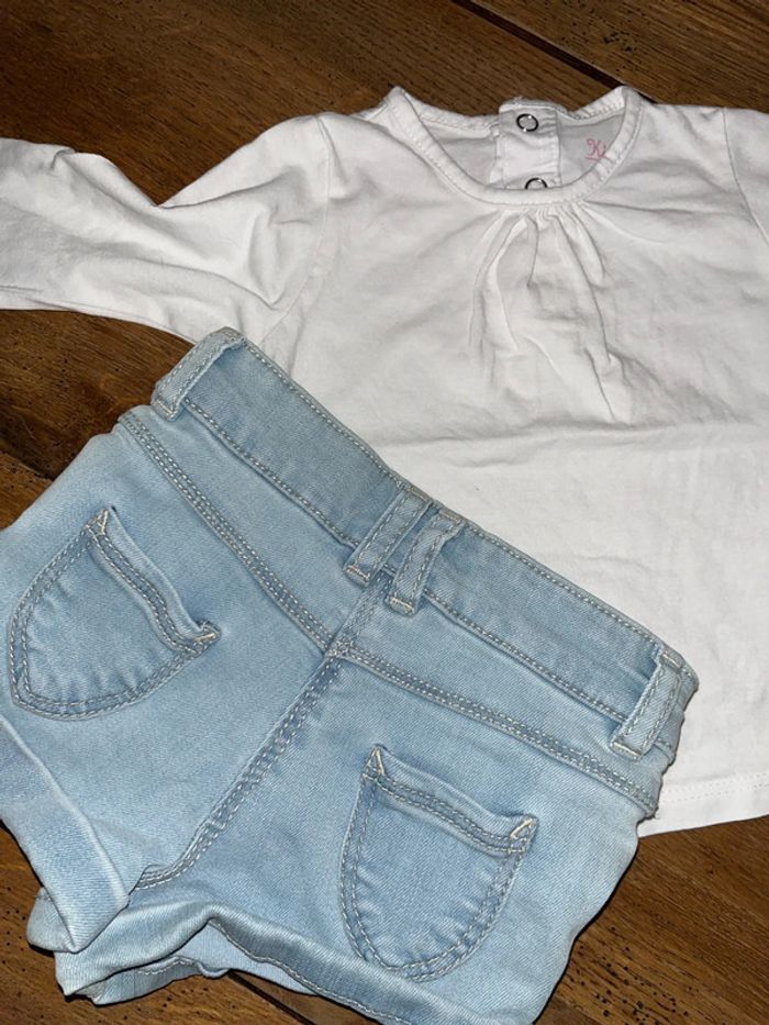 Ensemble petit pull fin + short en jean 6 mois - photo numéro 1