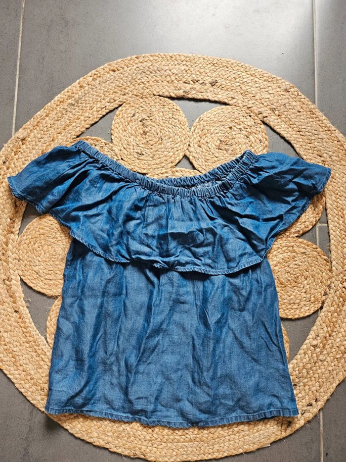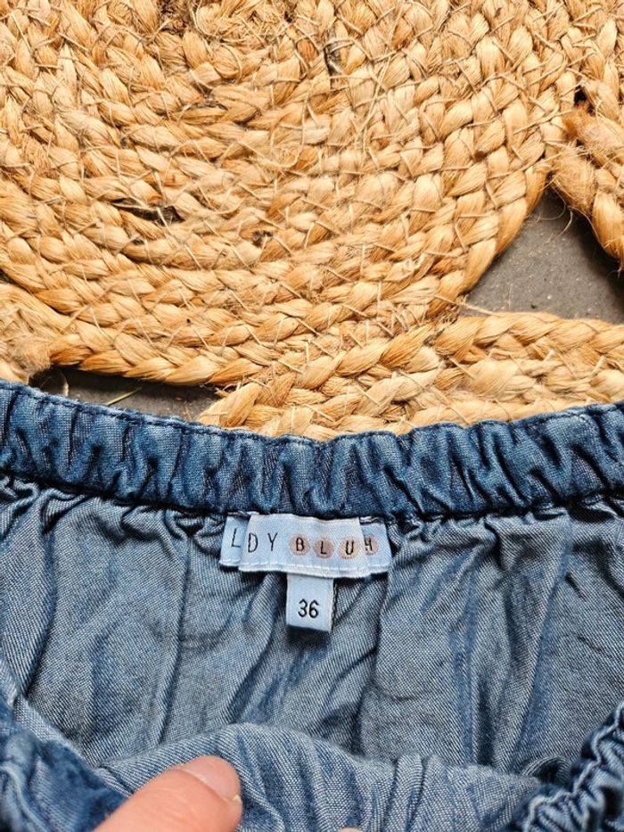 Joli haut effet jean avec un col fantaisie pouvant se porter aux épaules. Taille 36 En très bon état Marque Lady Blush 2€ #tshirtfemme36 #debardeurfemme36 #hautfemme36