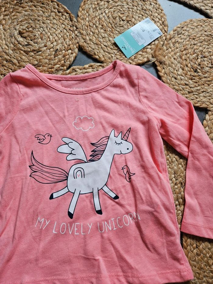 Joli t-shirt rose manches longues motif licorne Taille 12 mois In extenso Neuf encore étiqueté 1€50 #tshirt12moisfille #tshirtinextenso12mois