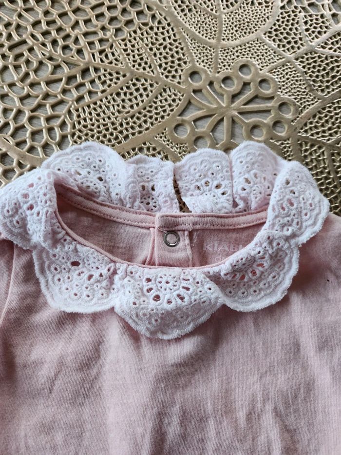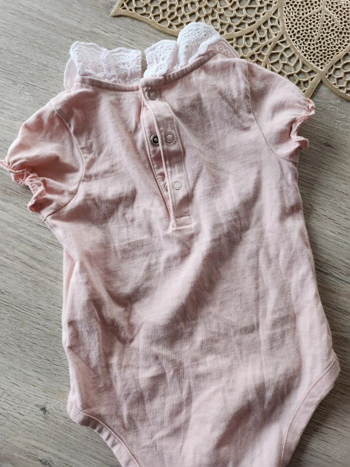 Très beau body rose à col blanc dentelle 9 mois Kiabi En tres bon etat juste un petit trou sur un côté 1€50 #body9mois #body9moisbebefille #bodykiabi9mois