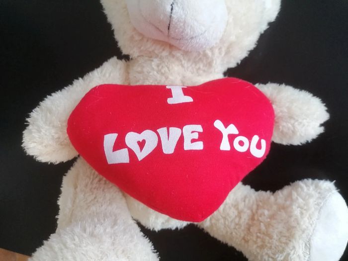 Ours en peluche blanc avec cœur rouge I love you - photo numéro 1