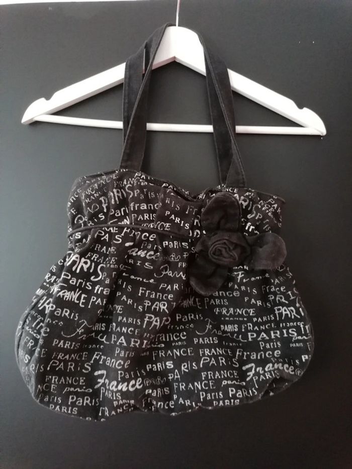 Sac à main noir et blanc Paris France tissu - photo numéro 1